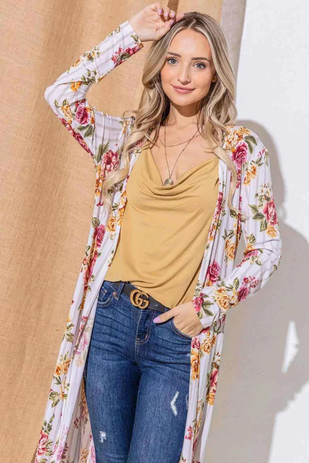 The Floral Kimono Open Front Longline Cardigan is a stunning piece that combines comfort with flair. Its open-front design and...