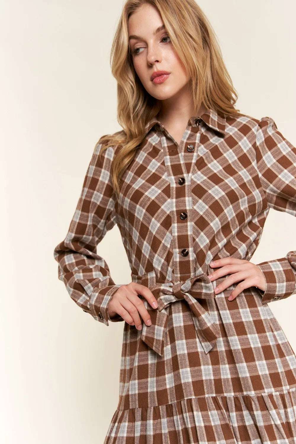 The Plaid Tiered Midi Shirt Dress is a stylish and versatile piece that combines classic plaid with a modern silhouette....