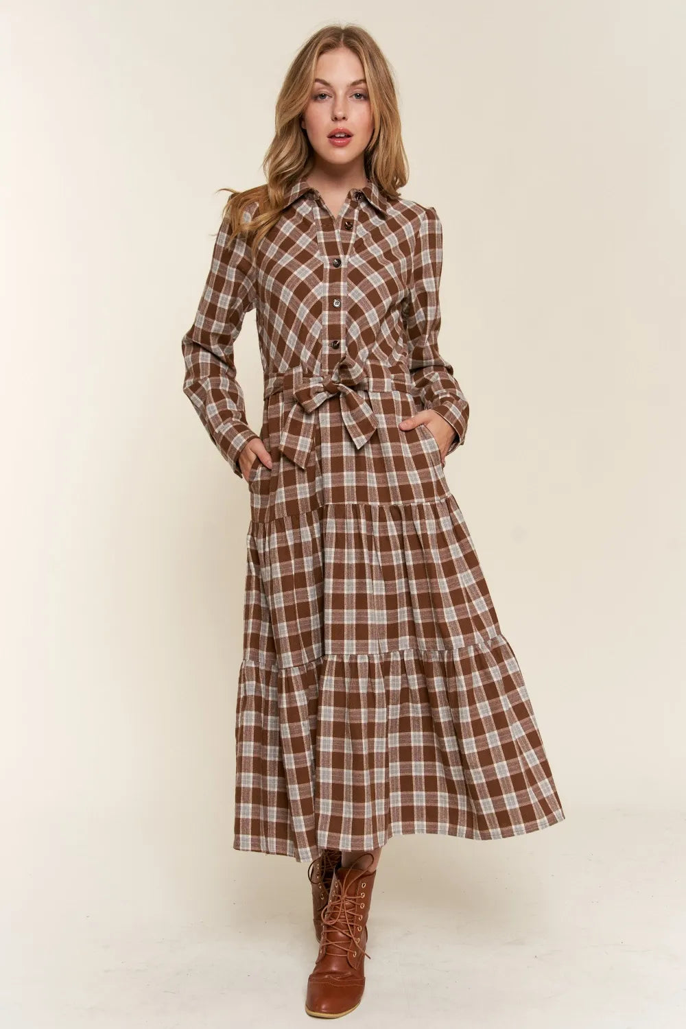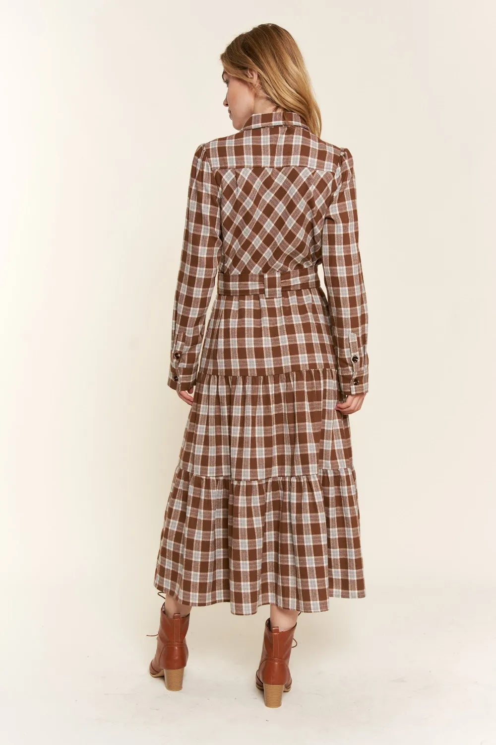 And the Why Plaid Tiered Midi Shirt Dress
