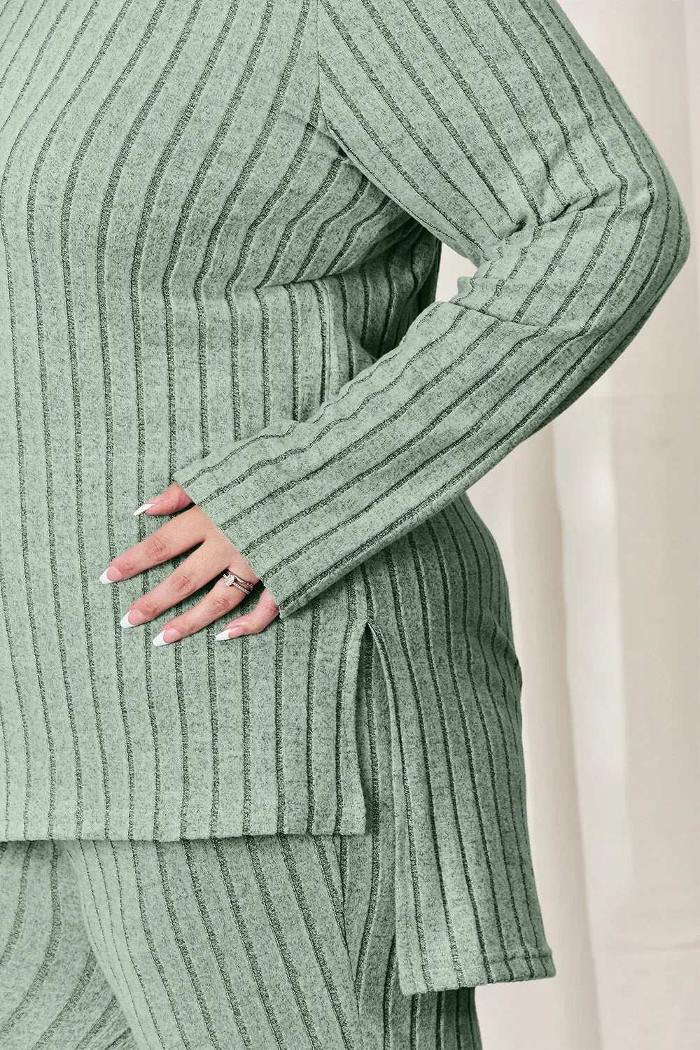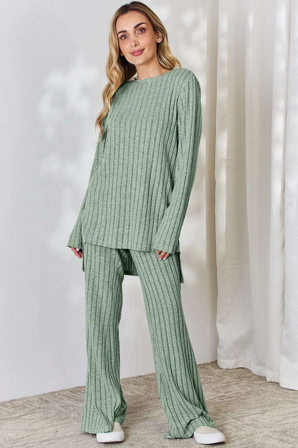 Basic Bae Full Size Ribbed High-Low Top and Wide Leg Pants Set