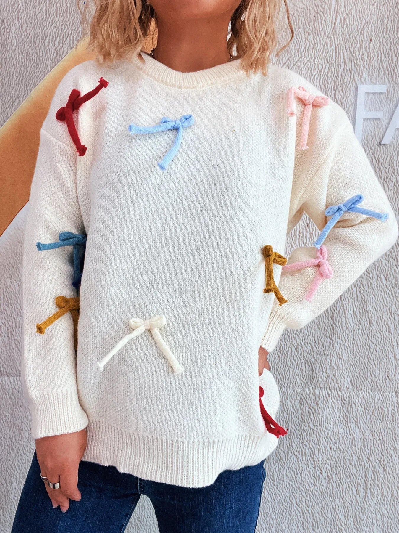 Colorful Bow Round Neck Sweater