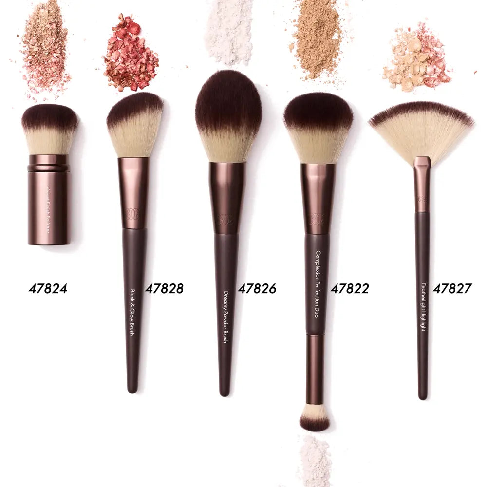 A dual-ended powder brush tool for precise highlighting, concealing, and sculpting with bronzer or blush. Dual-ended with soft multi-fibre bristles...