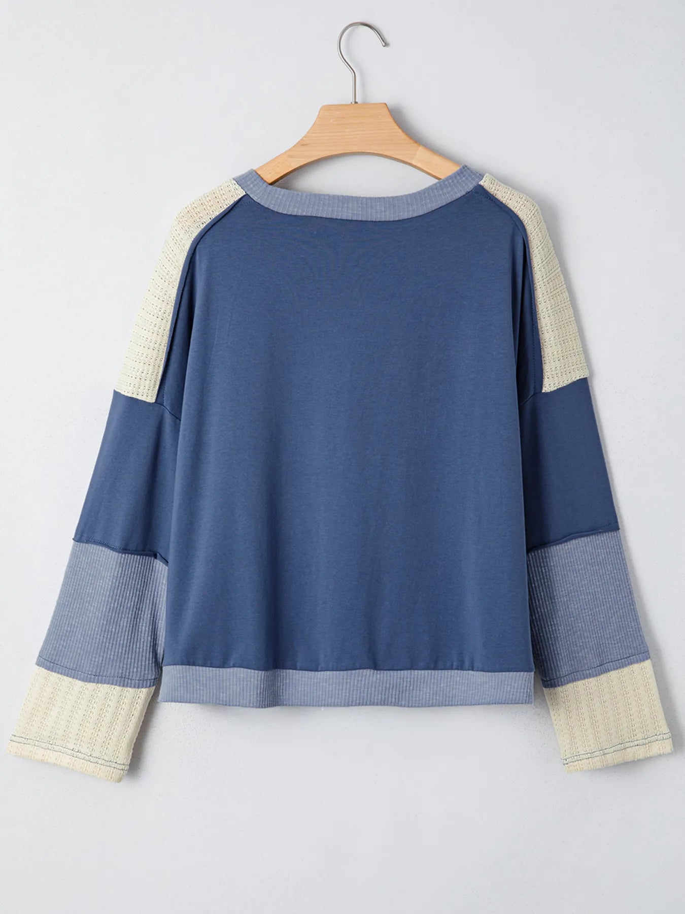 Contrast Knitted Colorblock Star Patchwork Oversize Long Sleeve Top