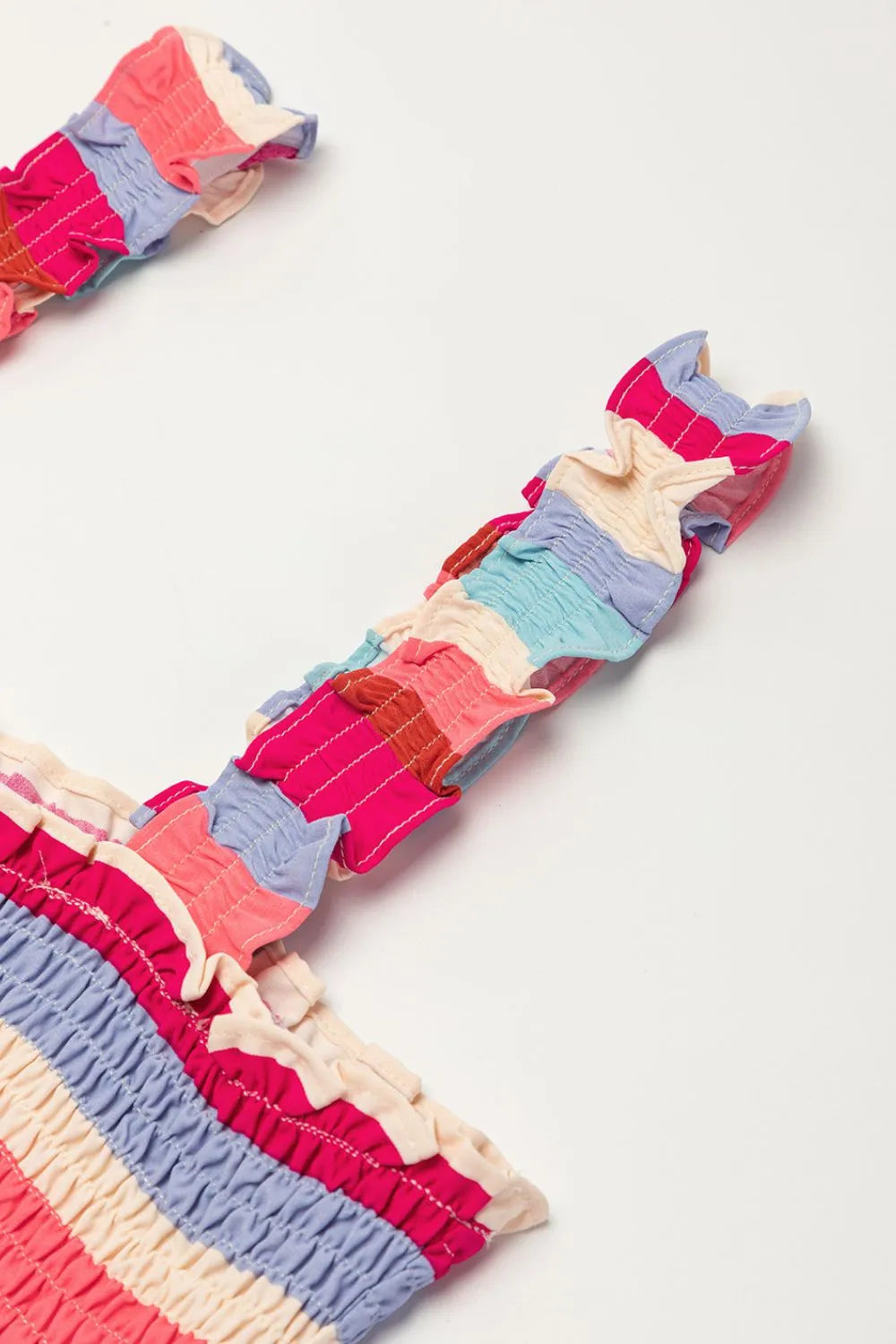 Contrast Stripe Wide Strap Smocked Tiered Dress