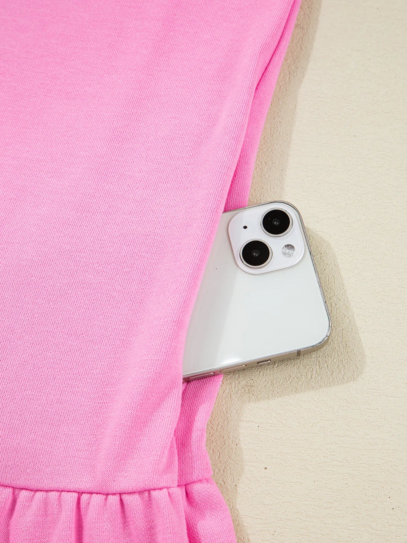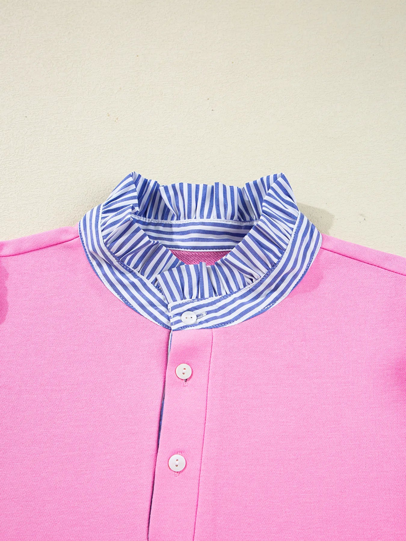 Contrast Striped Collar Patchwork Puff Sleeve Ruffle Hem Mini Dress