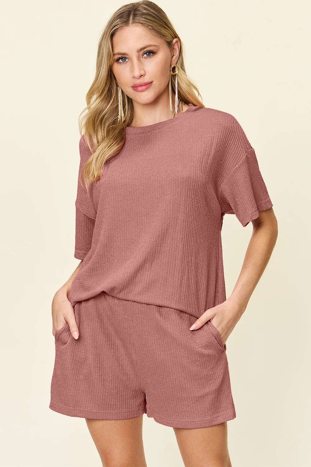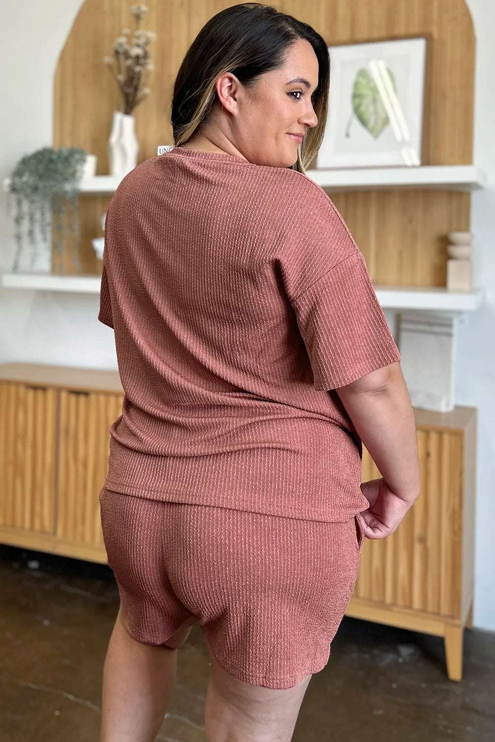 Double Take Full Size Round Neck Short Sleeve T-Shirt and Shorts Set