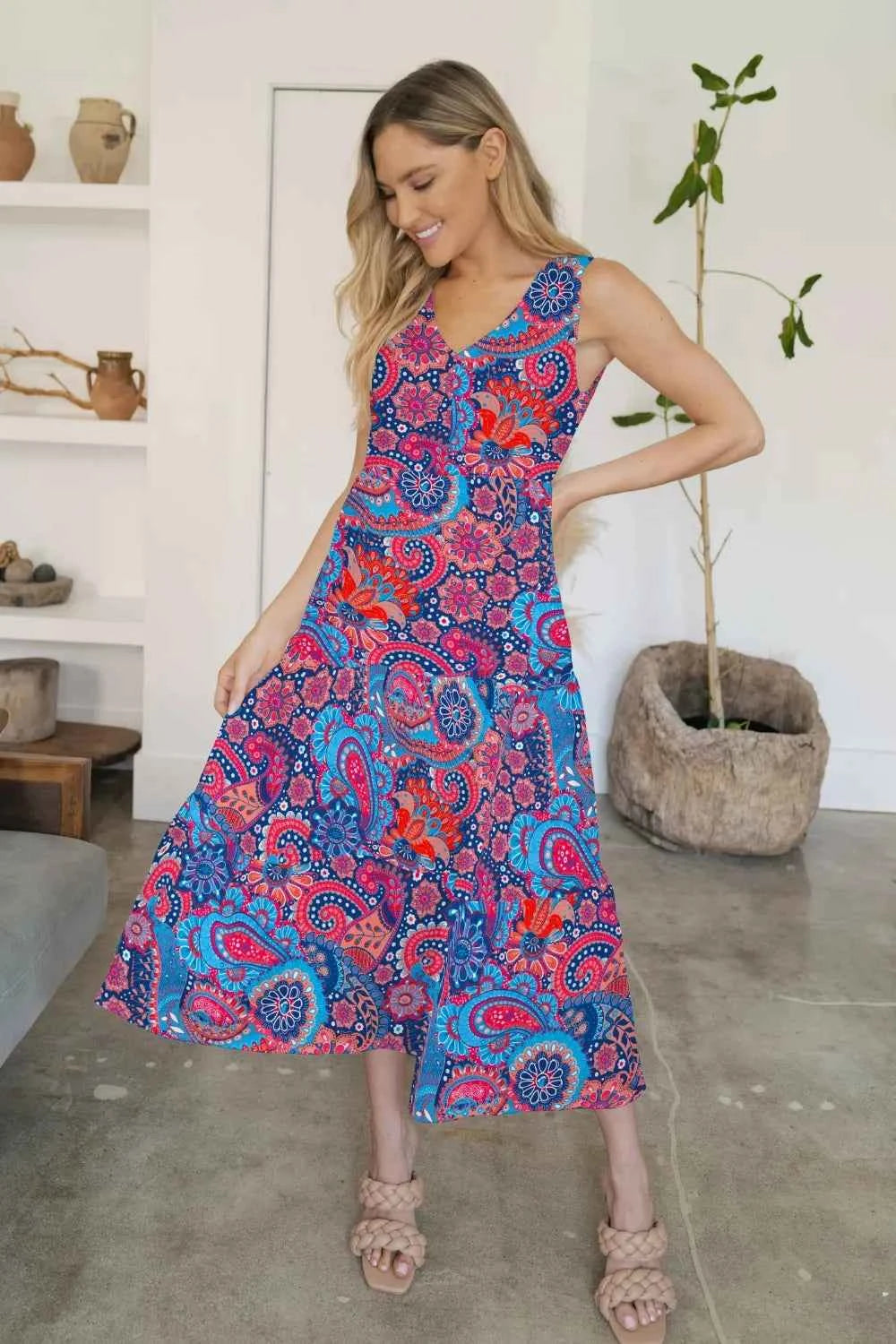 FAM-FAM Tiered Printed V-Neck Sleeveless Dress