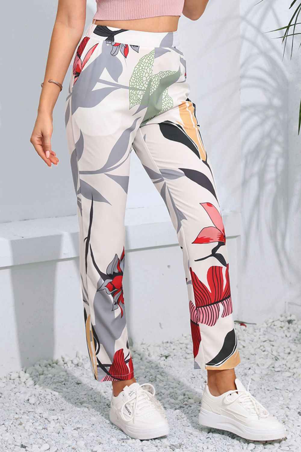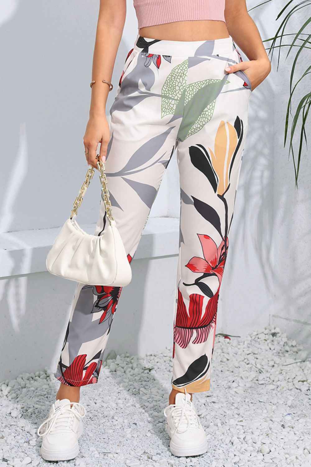 Pattern type: Floral Style: Chic Features: Pockets Length: Cropped Material composition: 100% polyester Care instructions: Machine wash cold. Tumble dry...