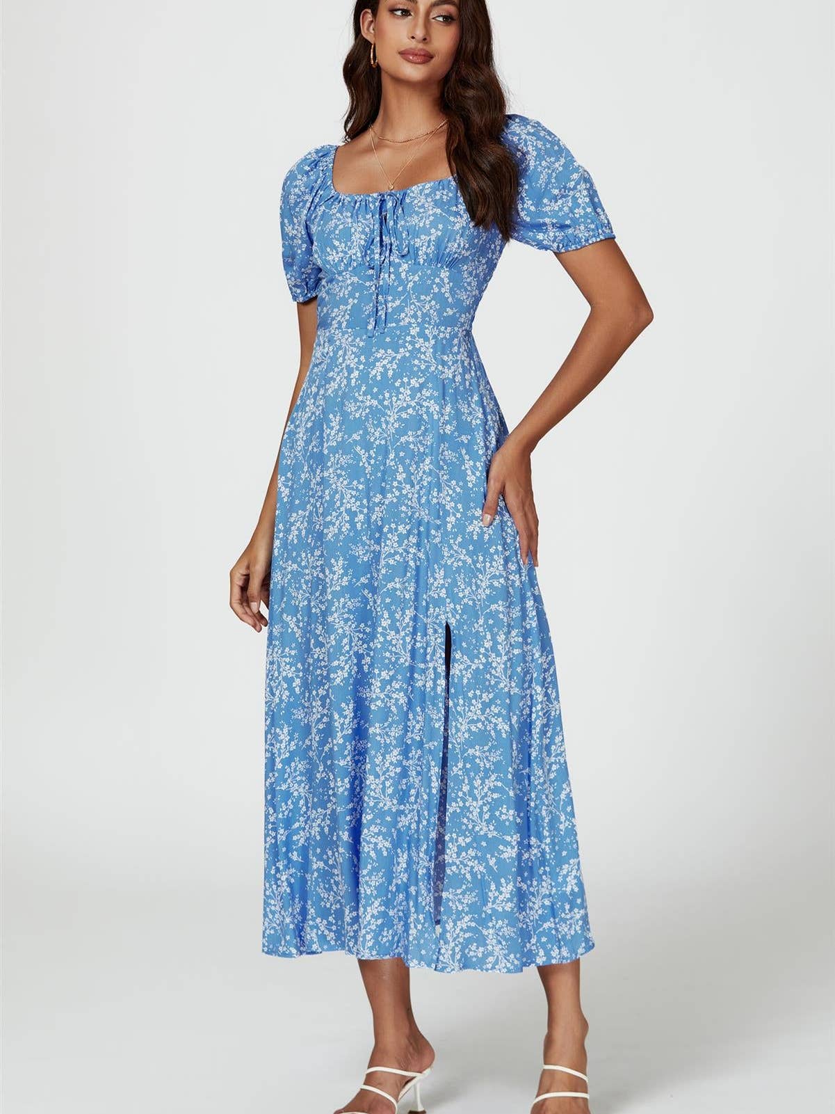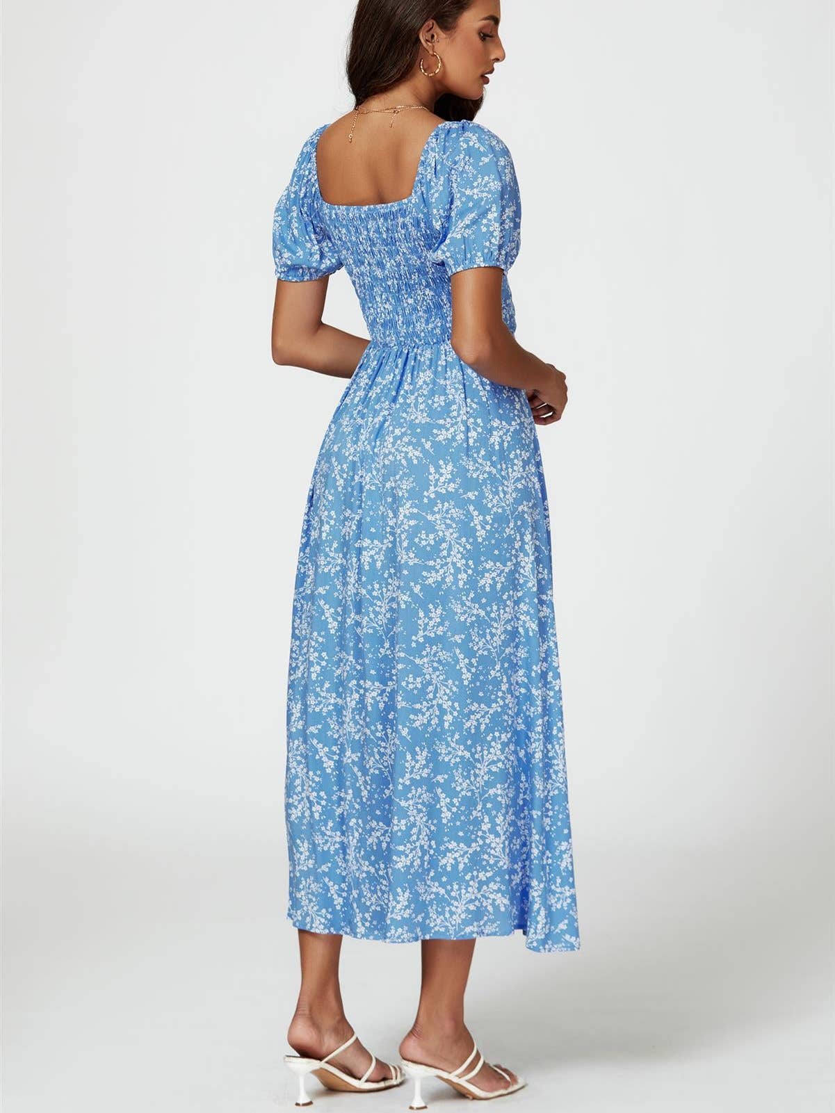 Floral Print Maxi Dress in Blue