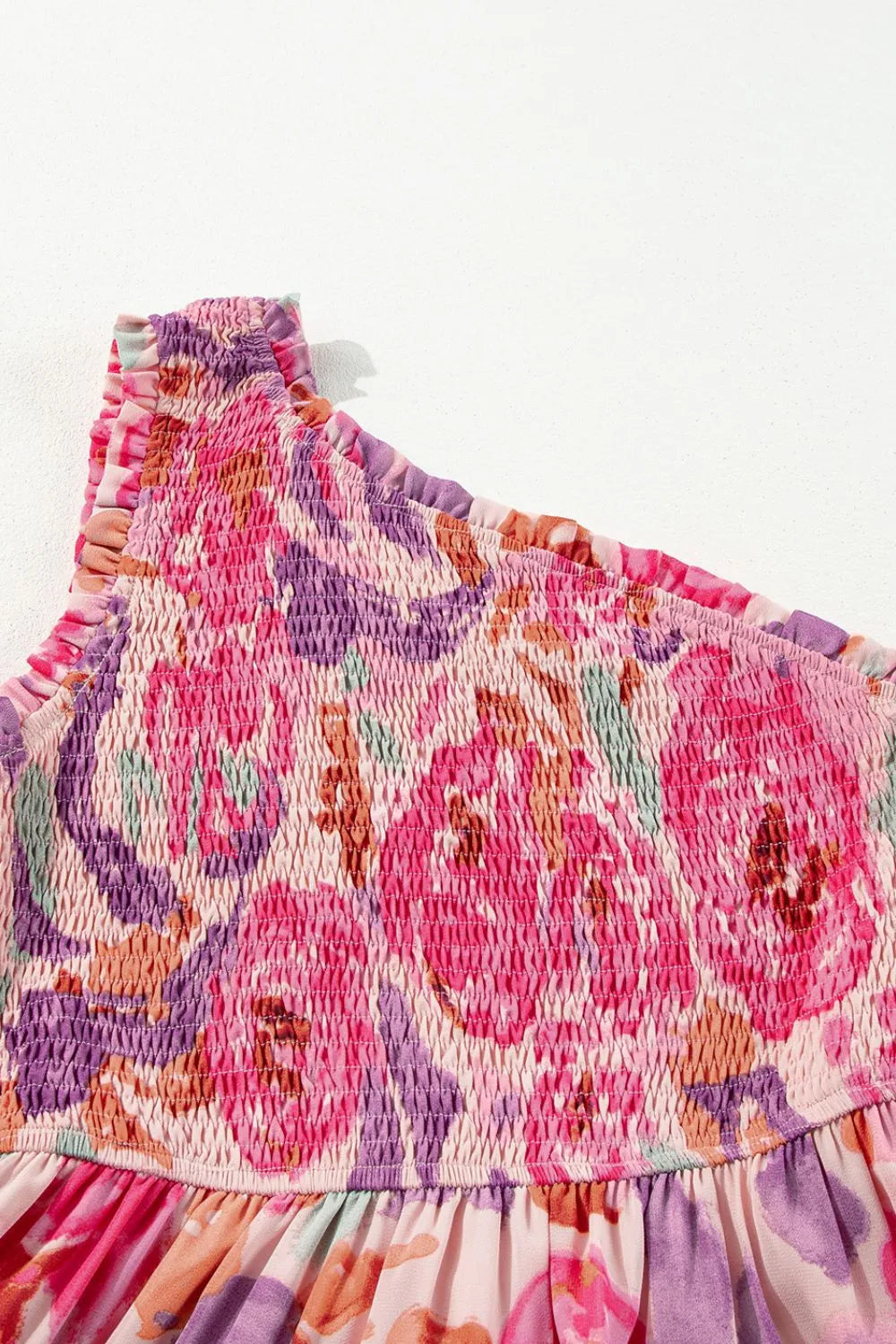 Floral Print Shirred One Shoulder Maxi Dress