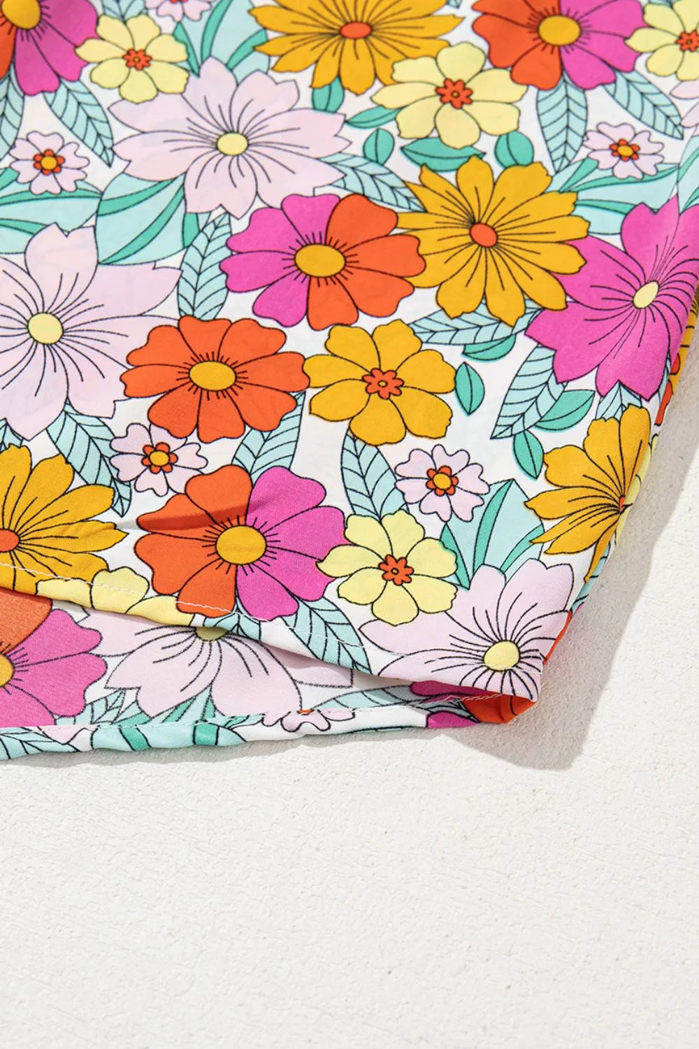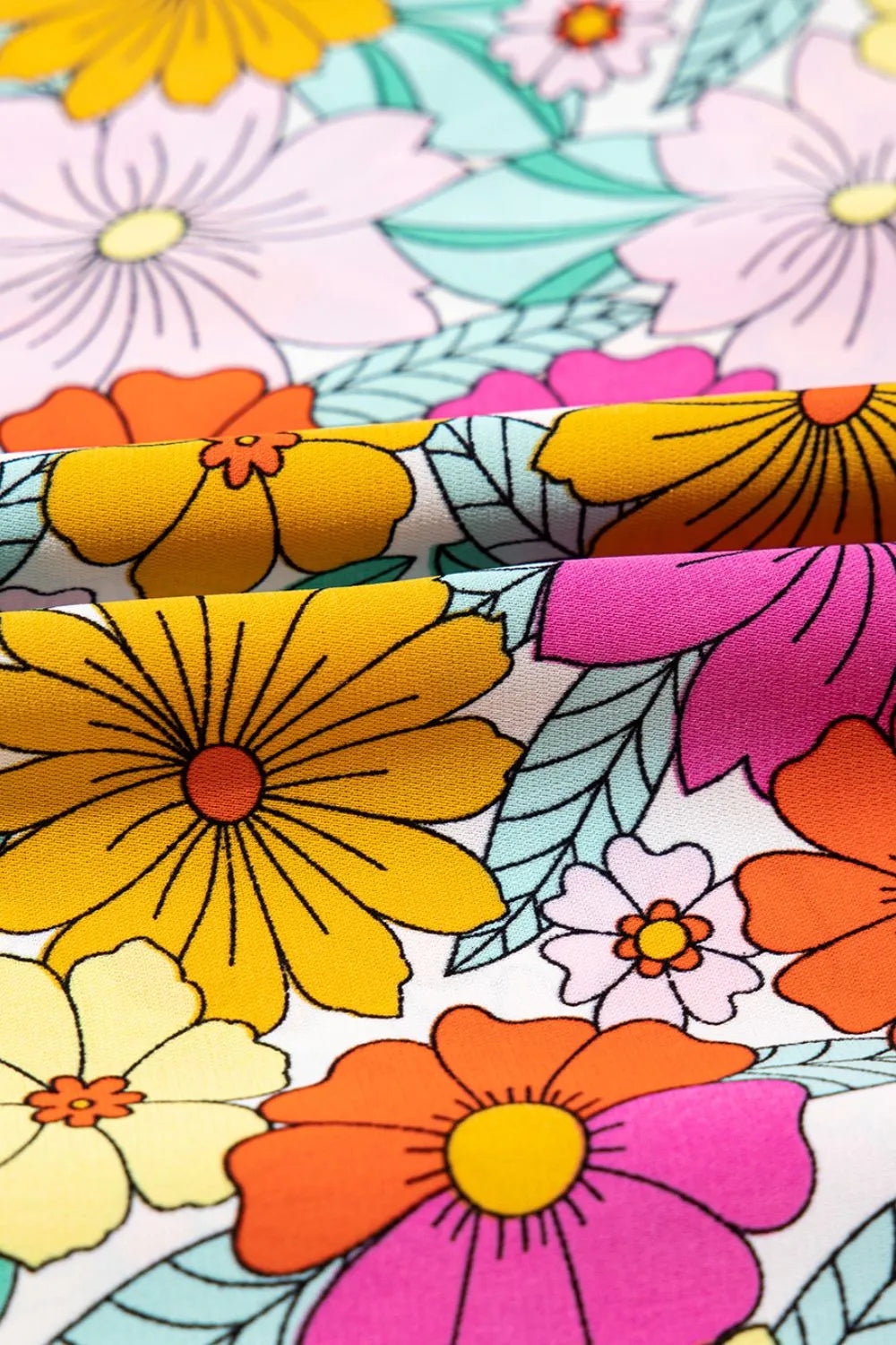 Floral Print Shirred Tiered Ruffled Sleeve Blouse