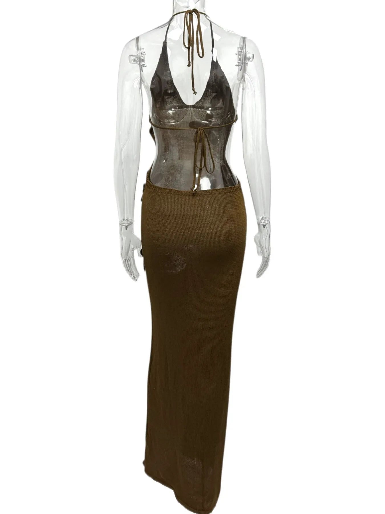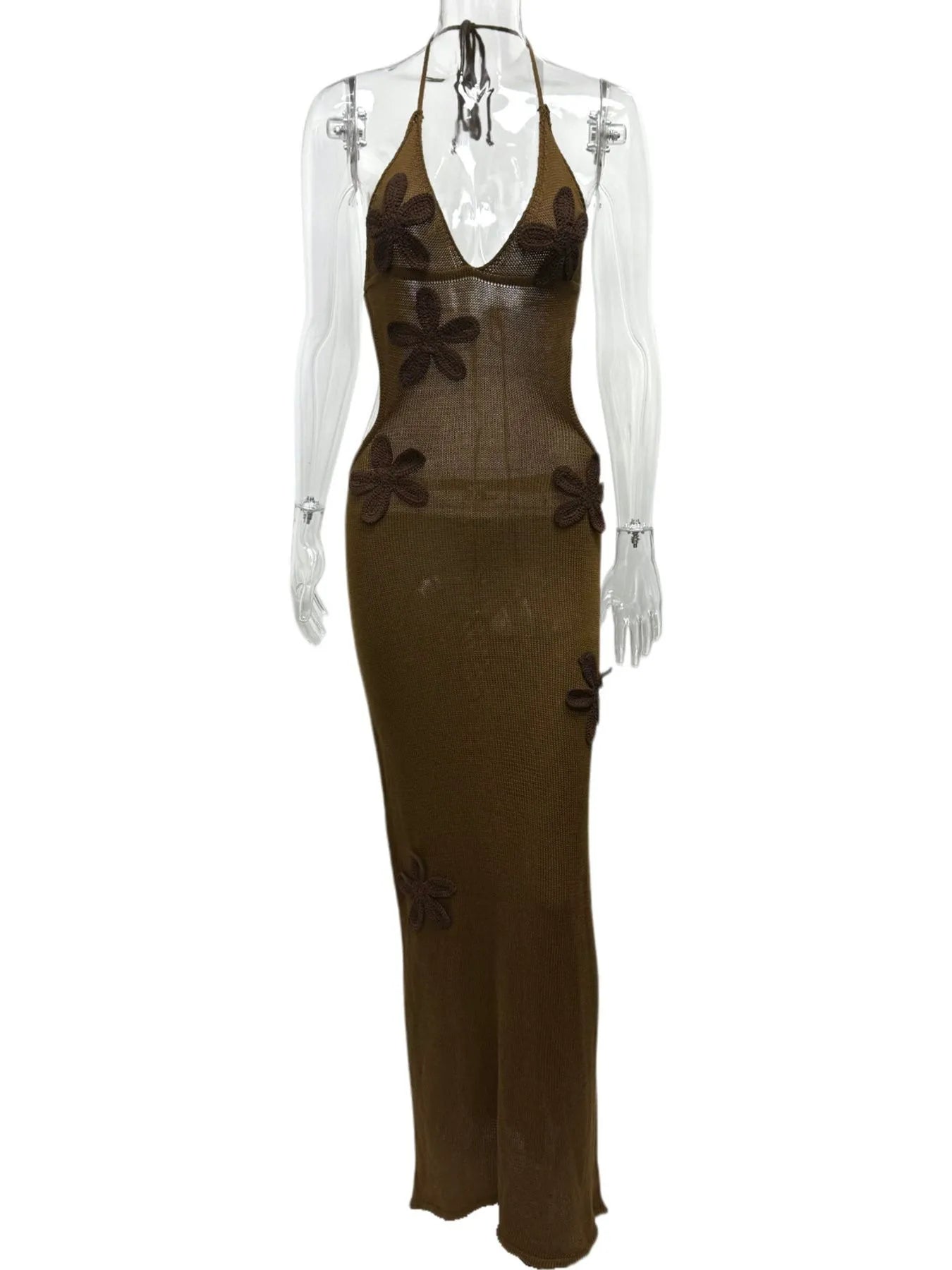 Flower Halter Neck Maxi Knit Dress