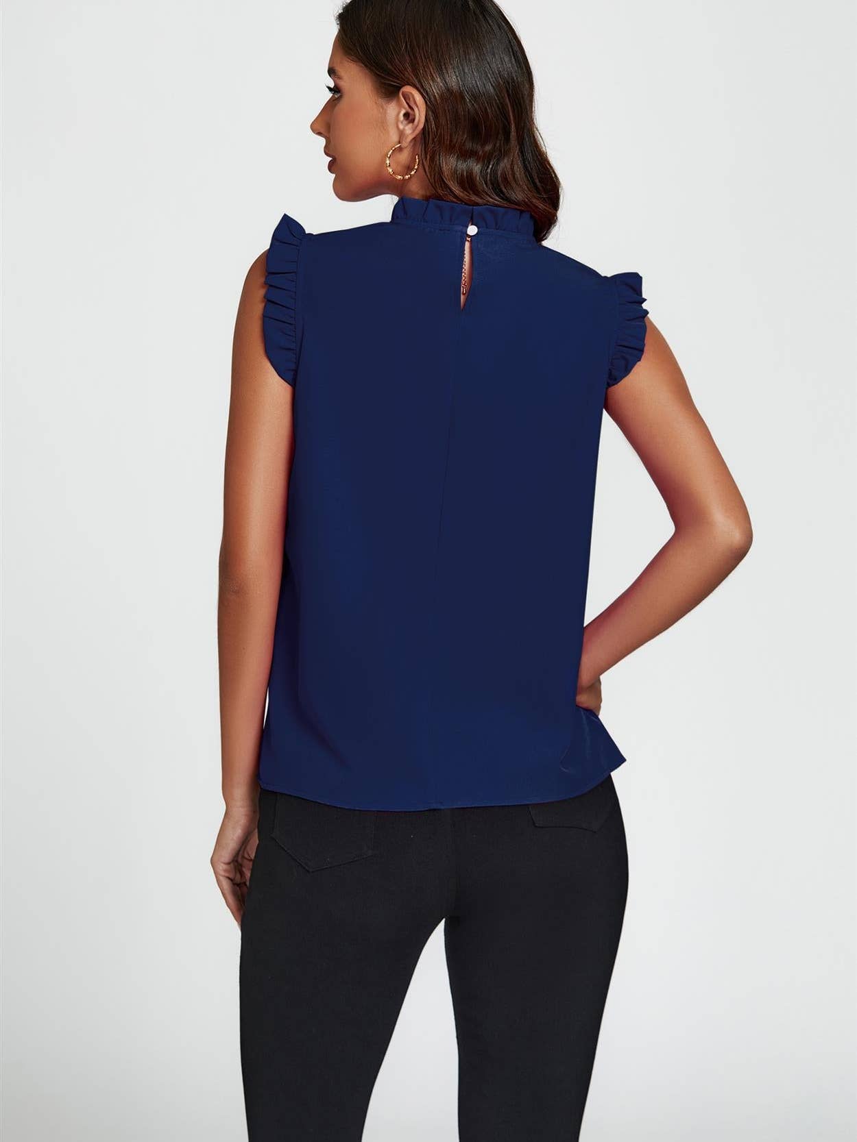Frill Trim Sleeve Frill Neck Blouse Top in Navy.