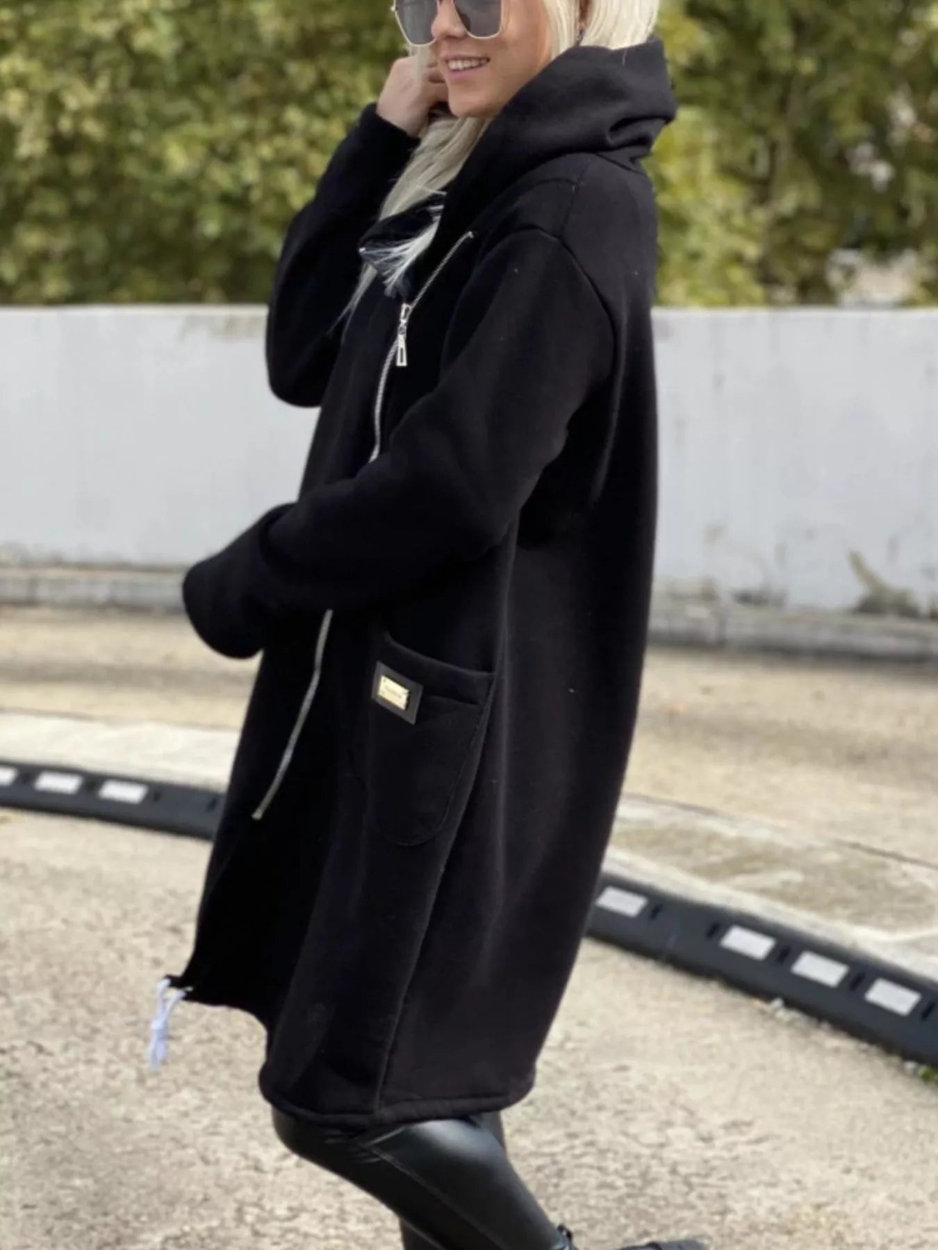 Full Size Asymmetrical Zip-Up Hooded Fleece Outerwear Plus Size