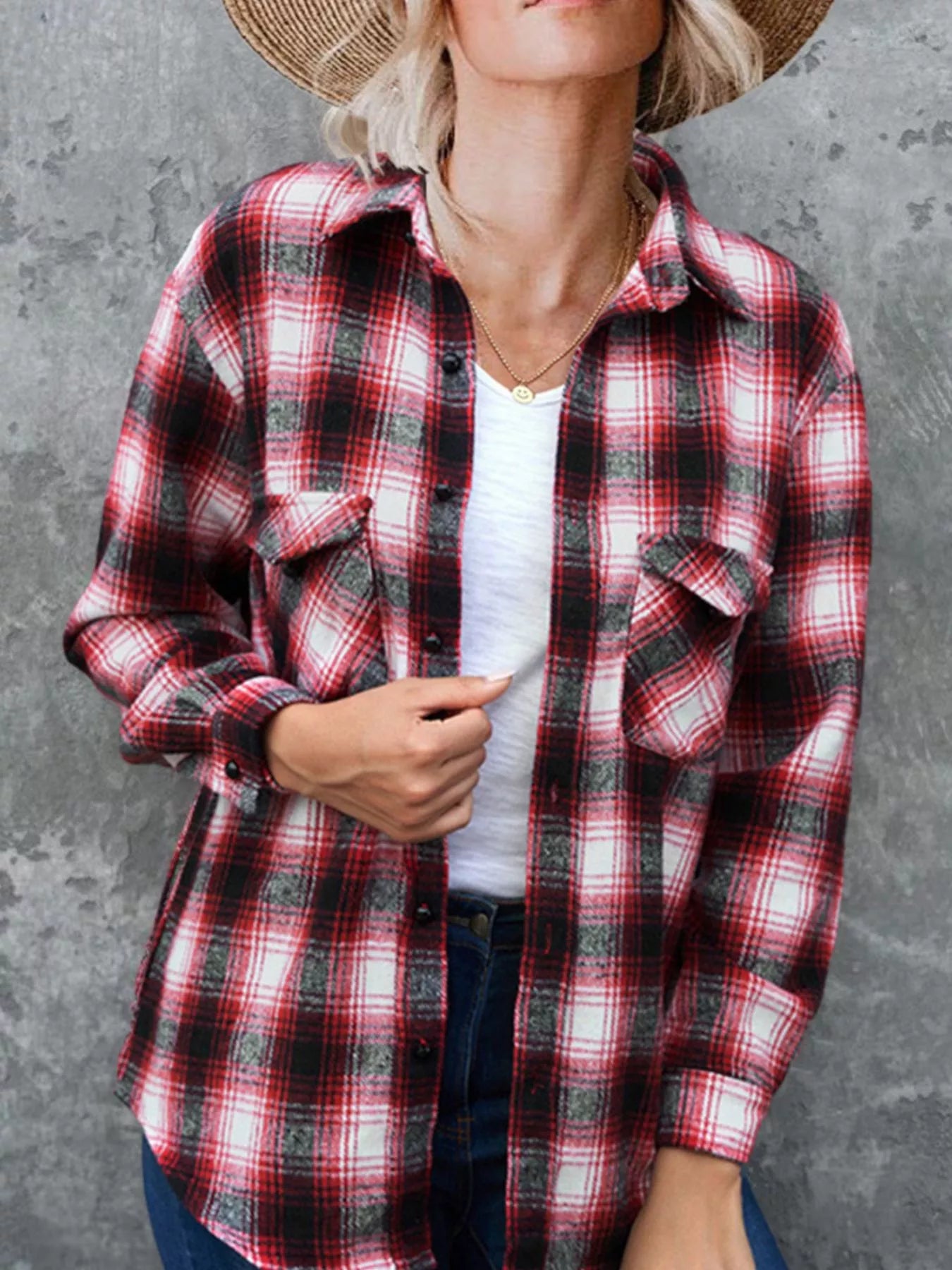 Full Size Plaid Button-Up Long Sleeve Shirt Plus Size