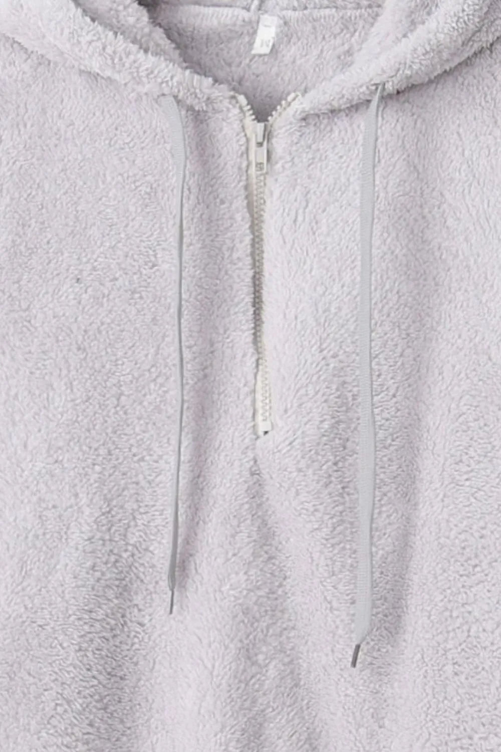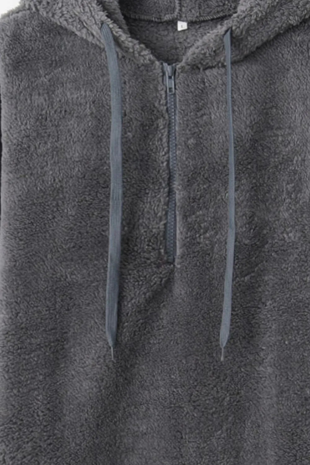 Full Size Quarter-Zip Drawstring Teddy Hoodie