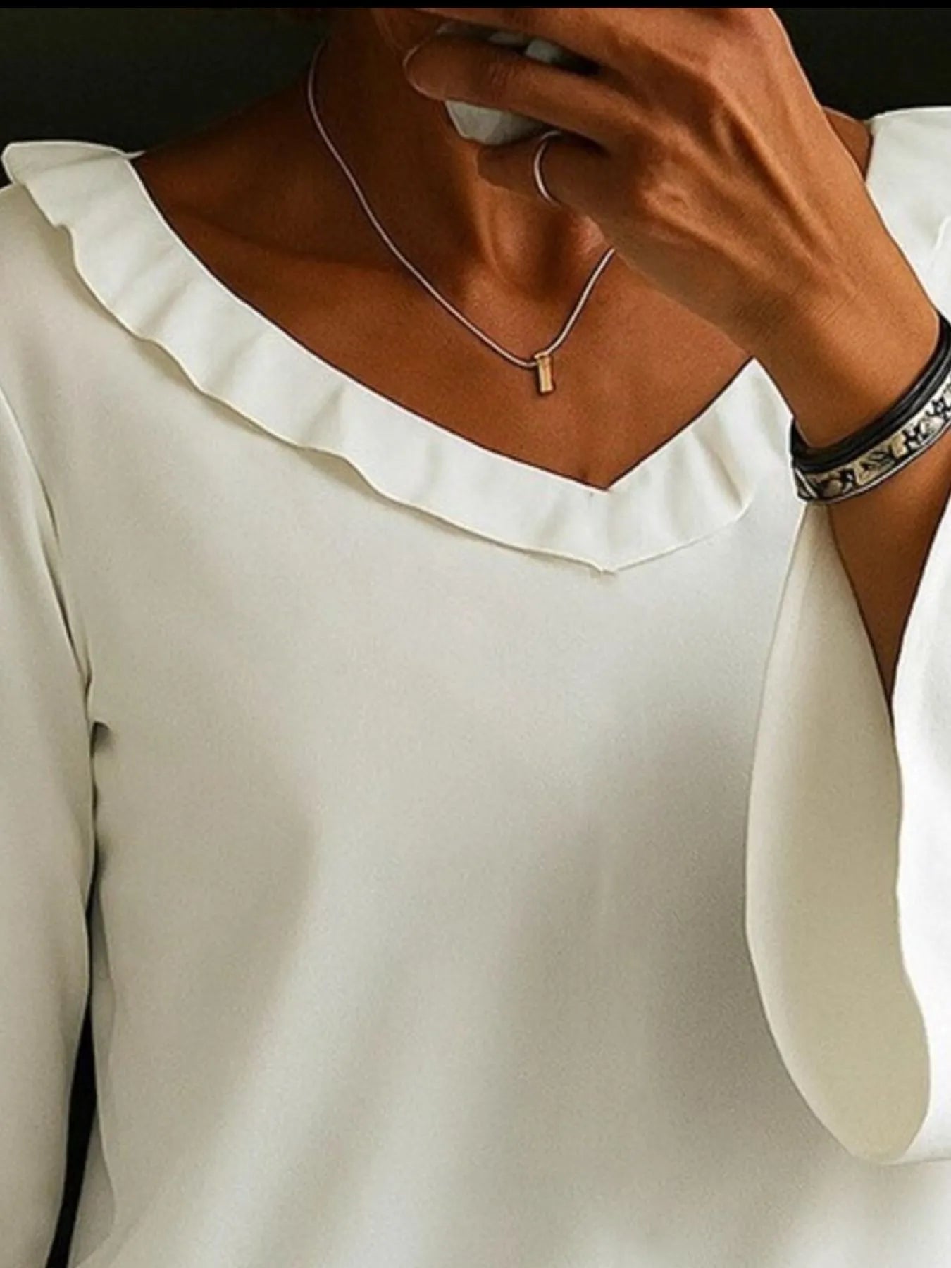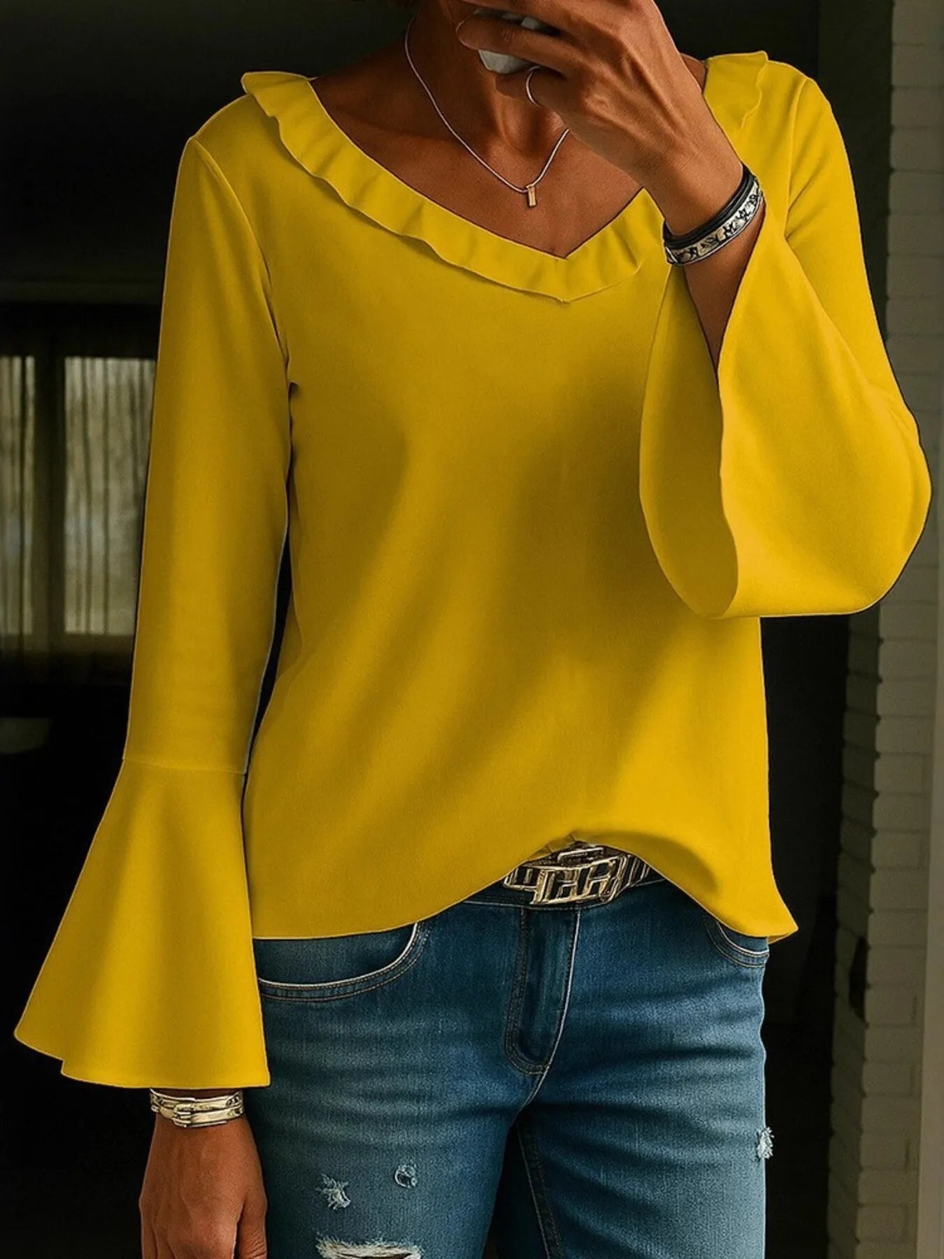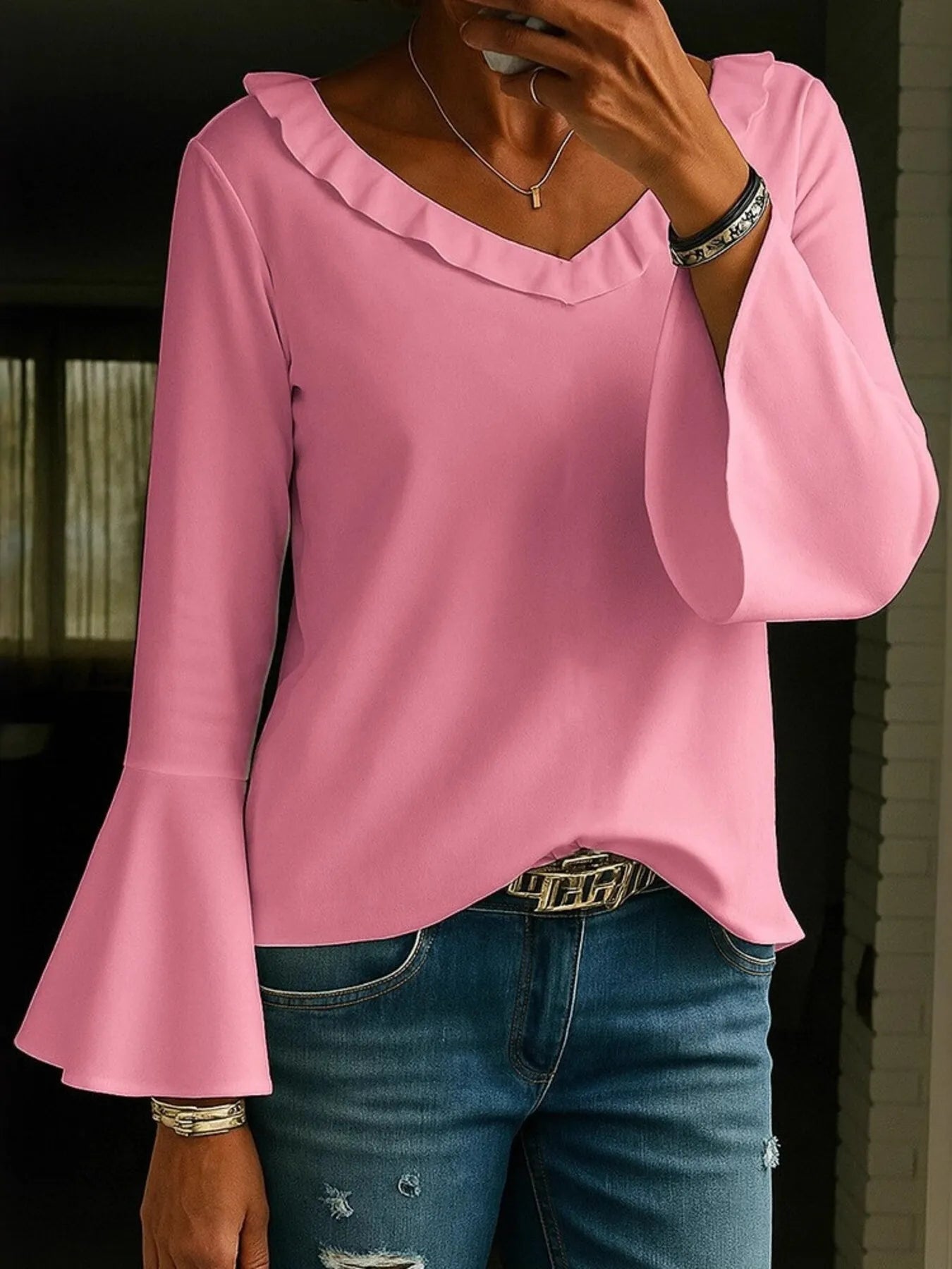 Full Size Ruffled V-Neck Bell Sleeve Top Plus Size