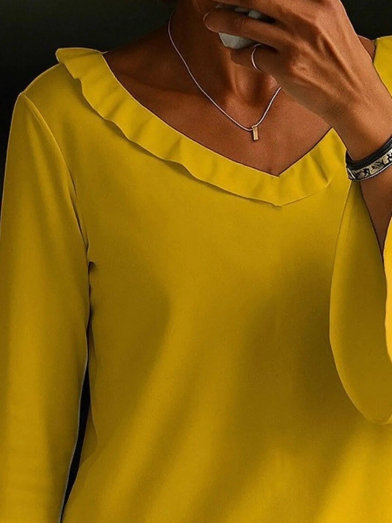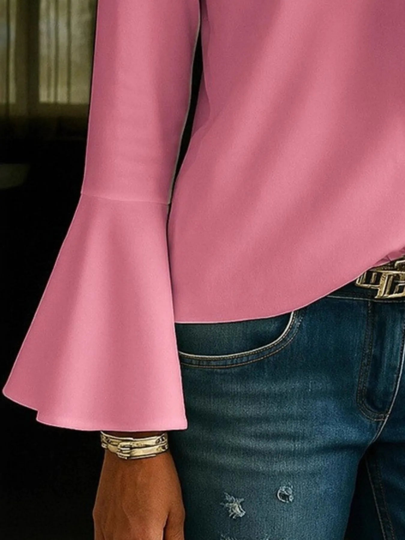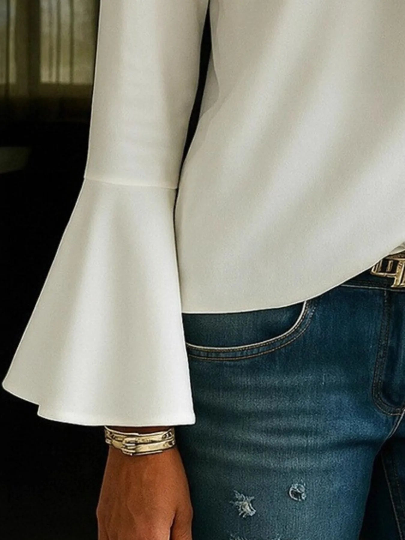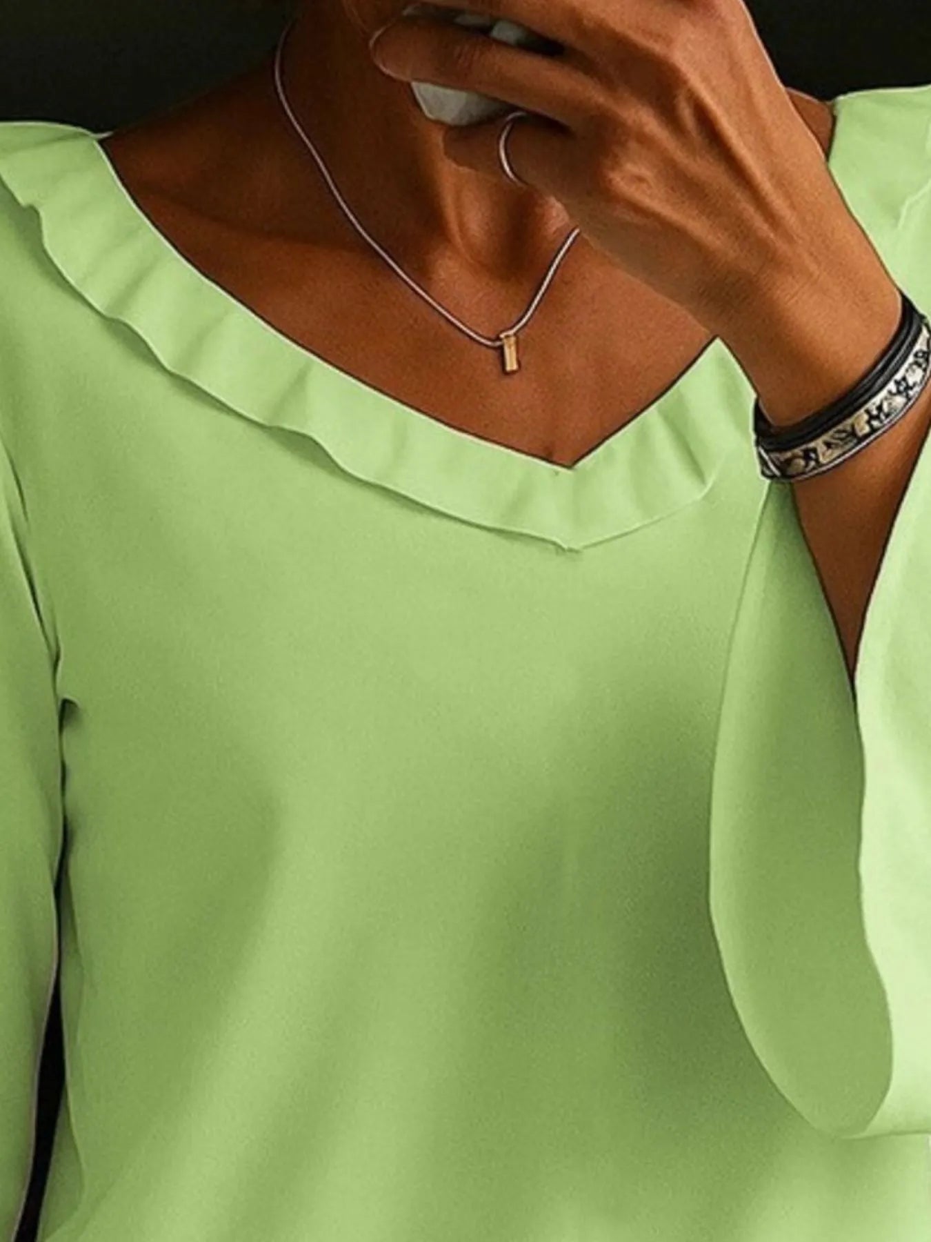 Full Size Ruffled V-Neck Bell Sleeve Top Plus Size