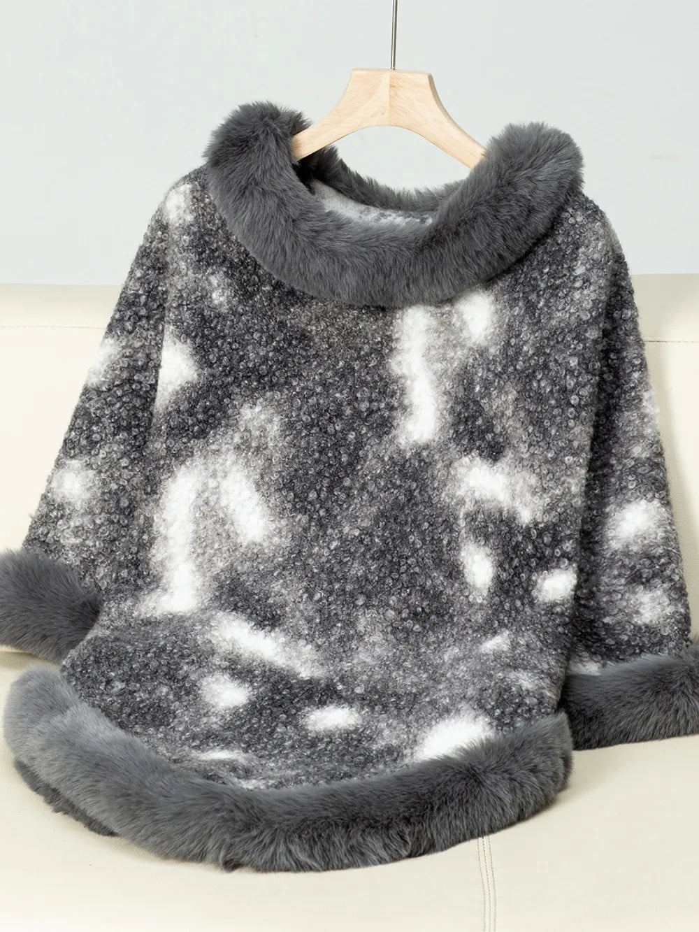Furry Contrast Three-Quarter Poncho