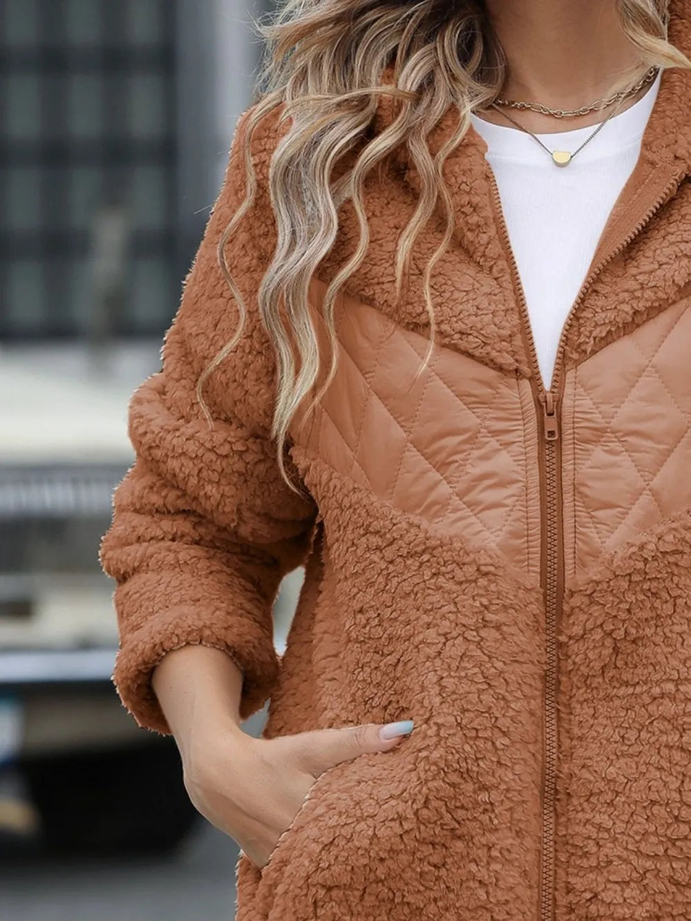 Fuzzy Zip Up Long Sleeve Hooded Jacket