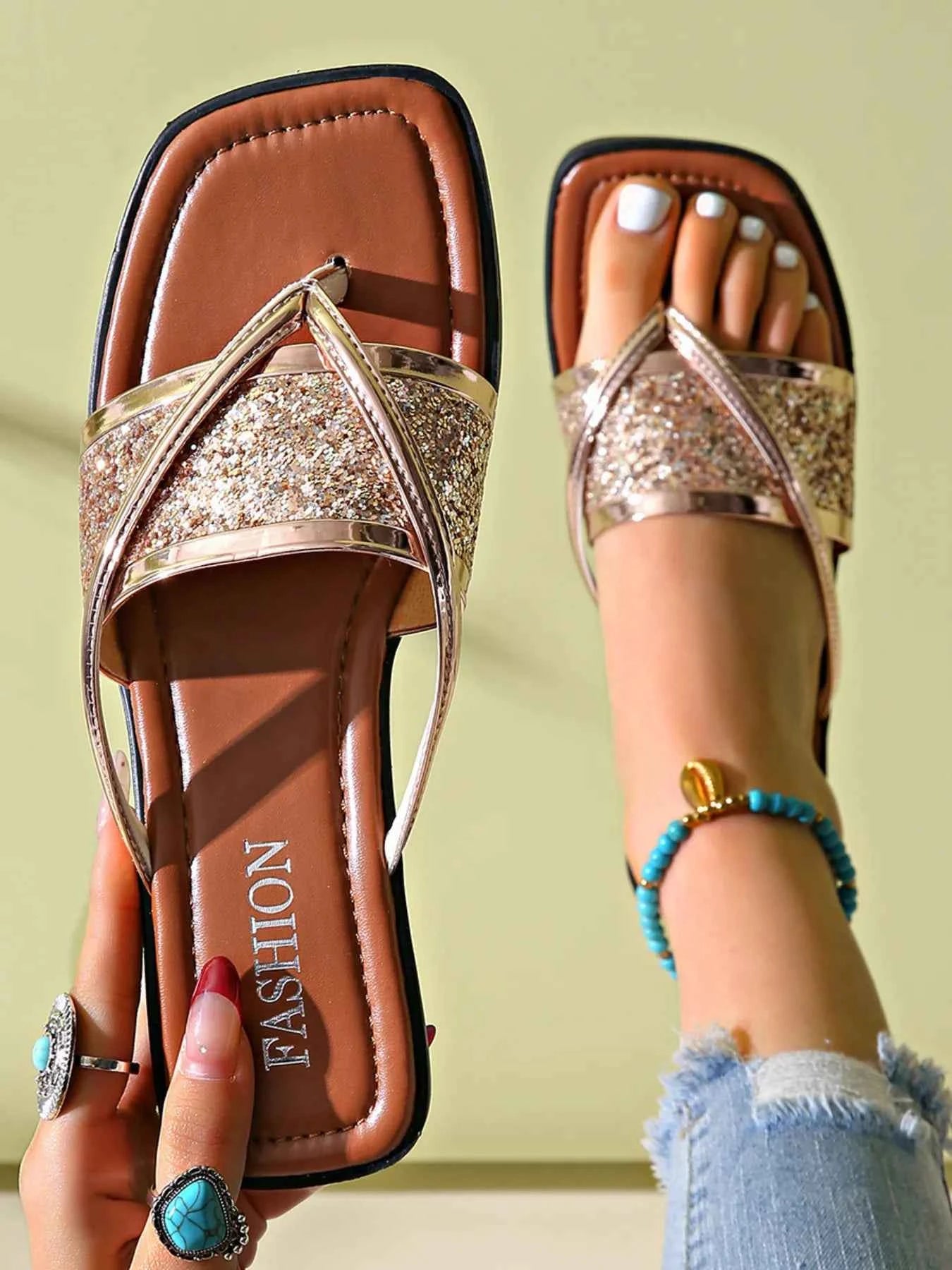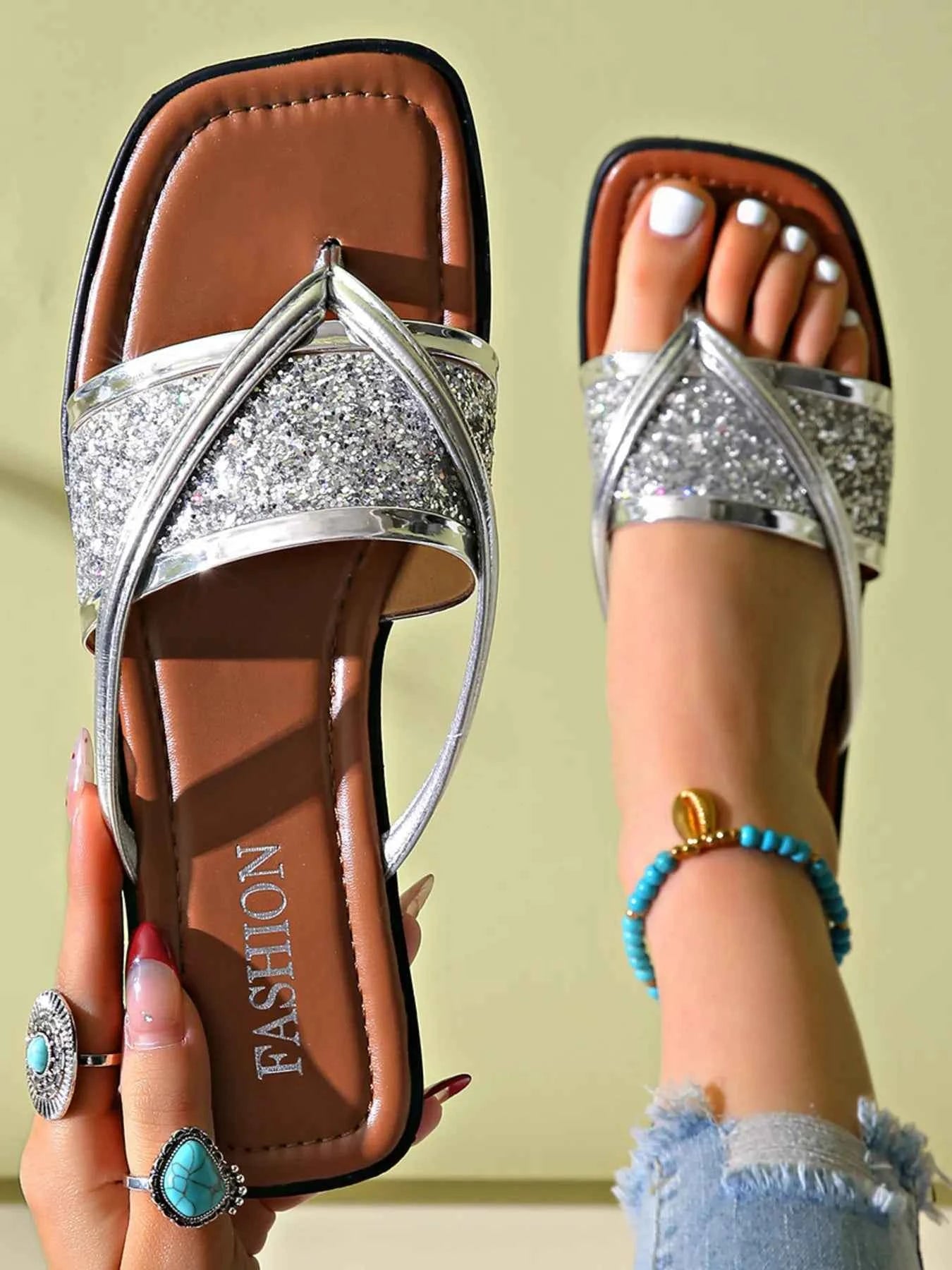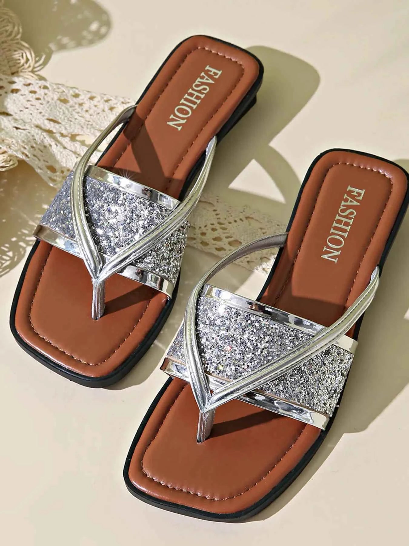 Glitter Cross-Strap Sandals