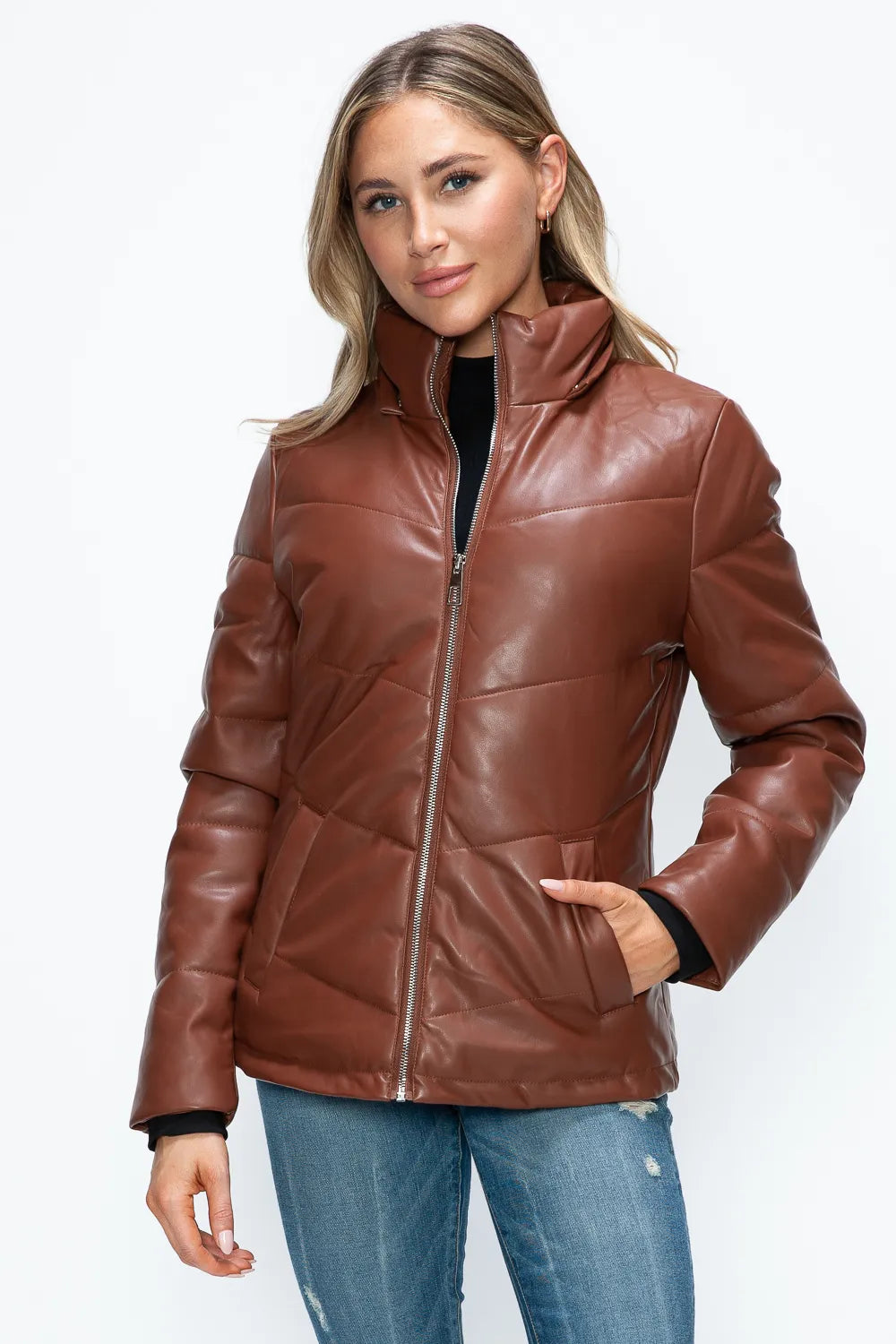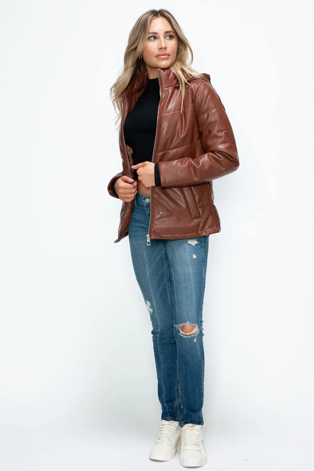 How Dare U Pocketed Zip Up Puffer Jacket with Removable Hood