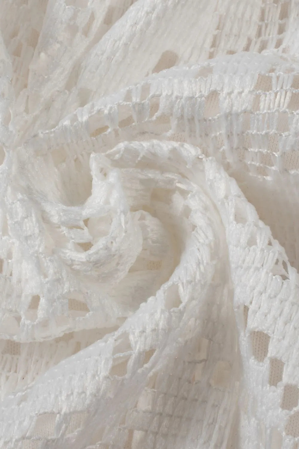 Lace Crochet Hollowed Scallop Hem V Neck Blouse