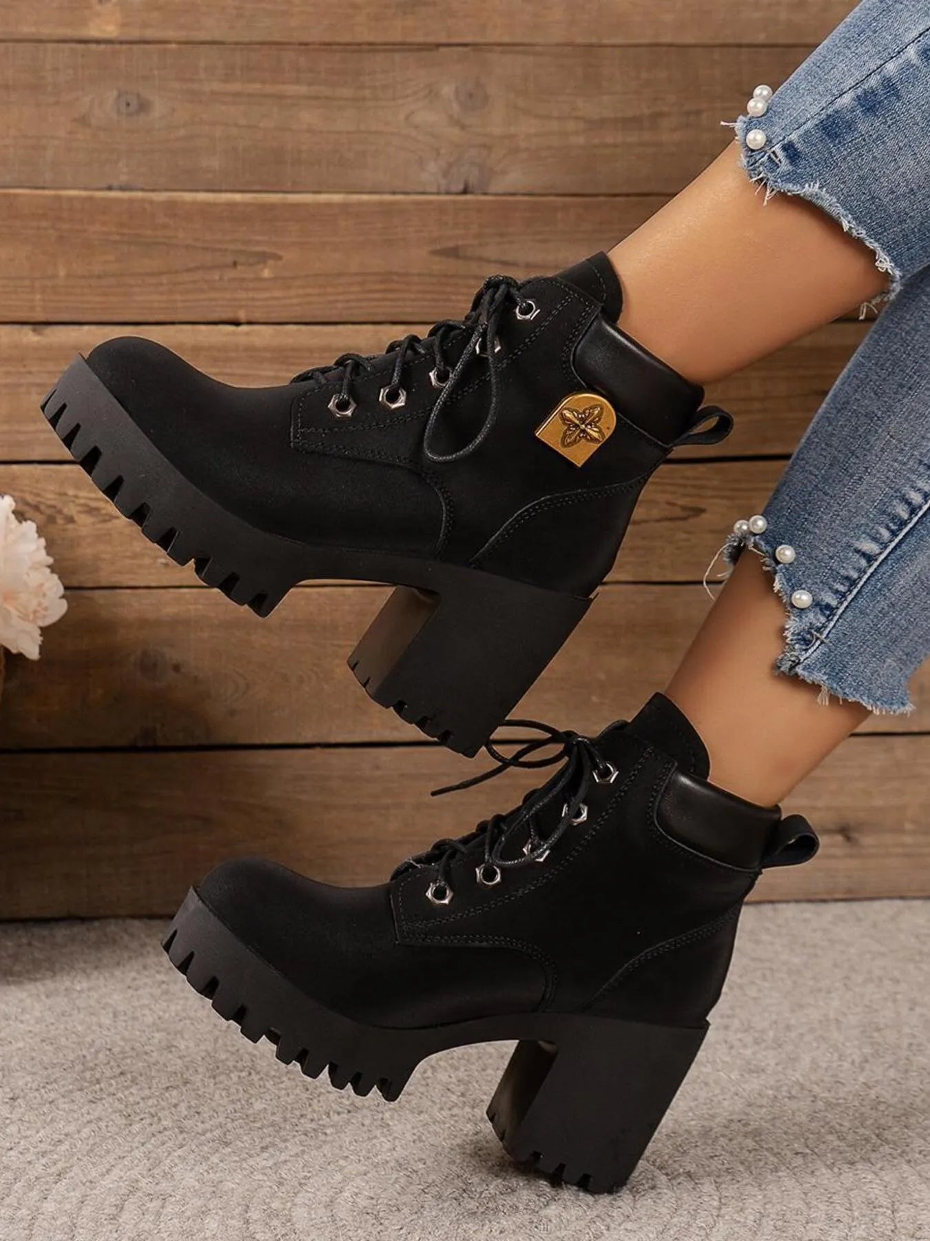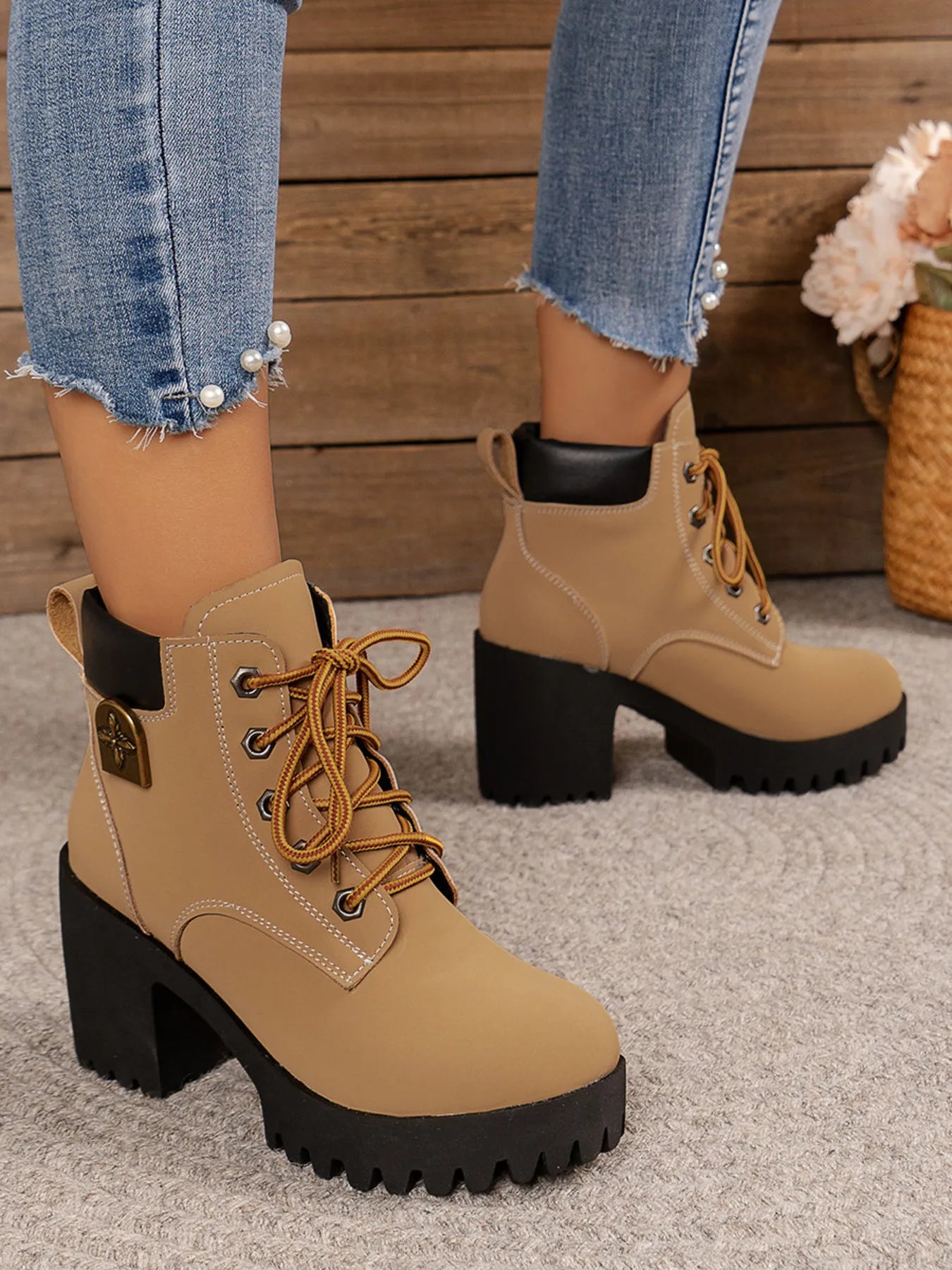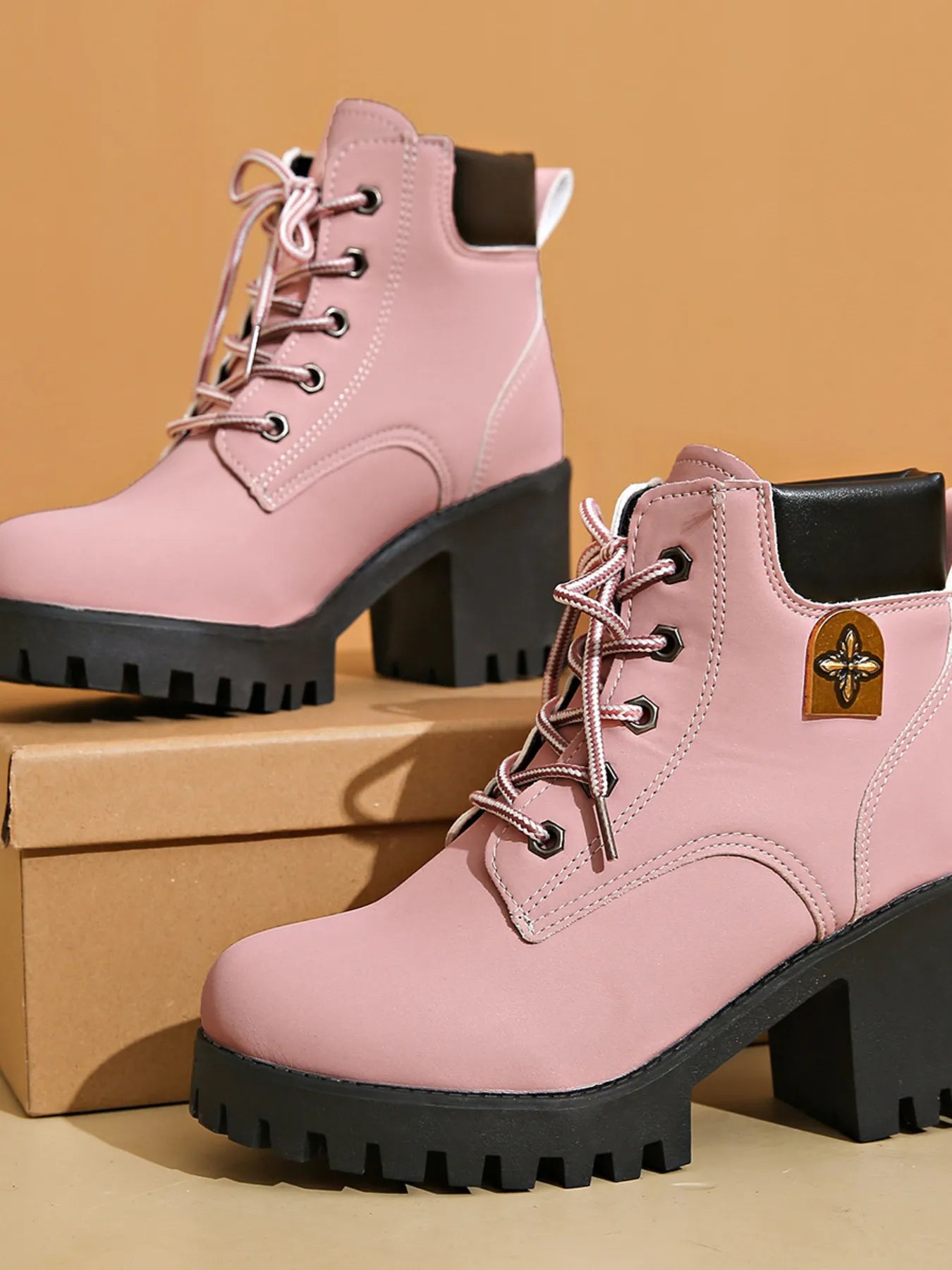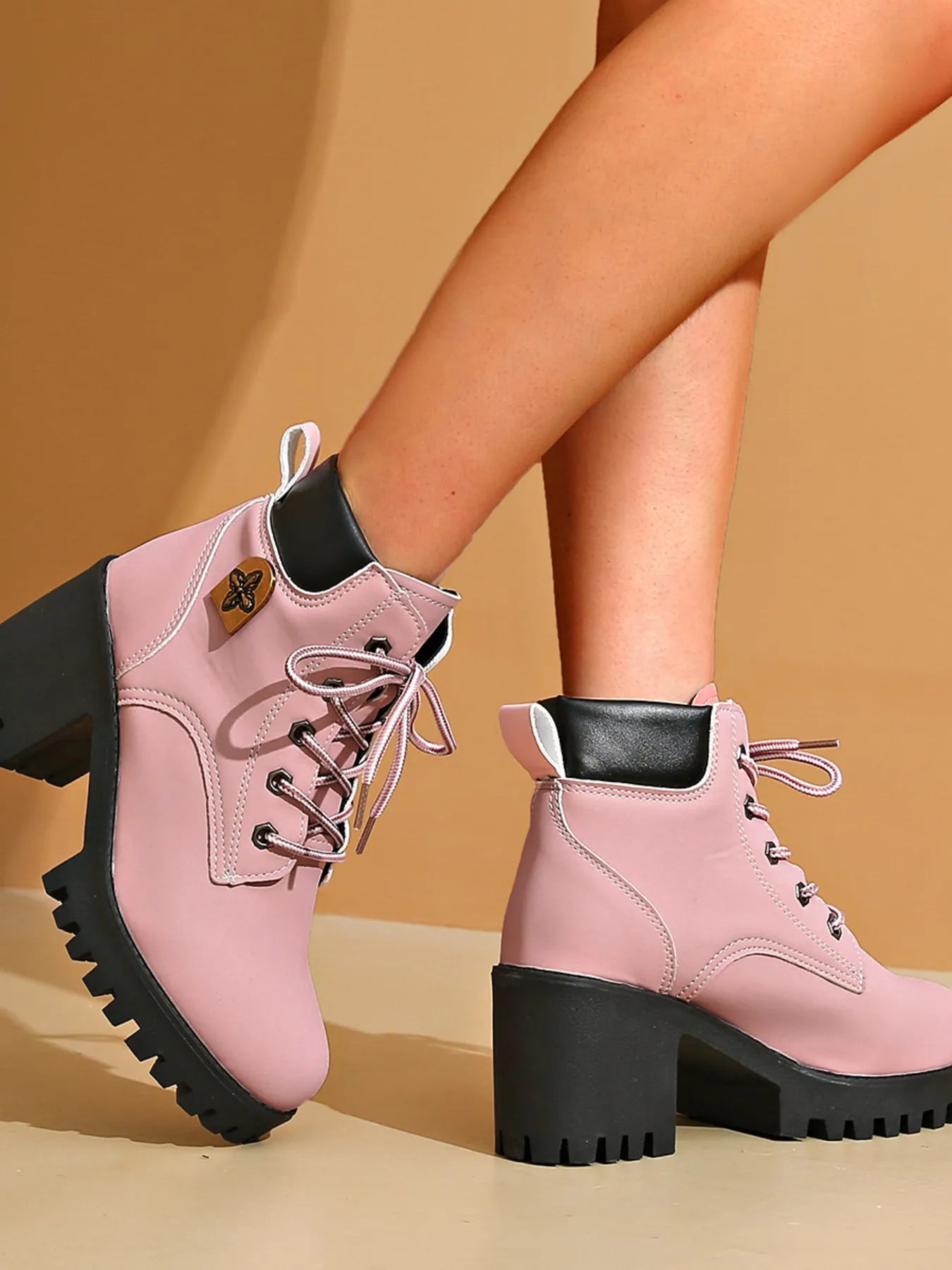 Lace Up Block Heel Boots
