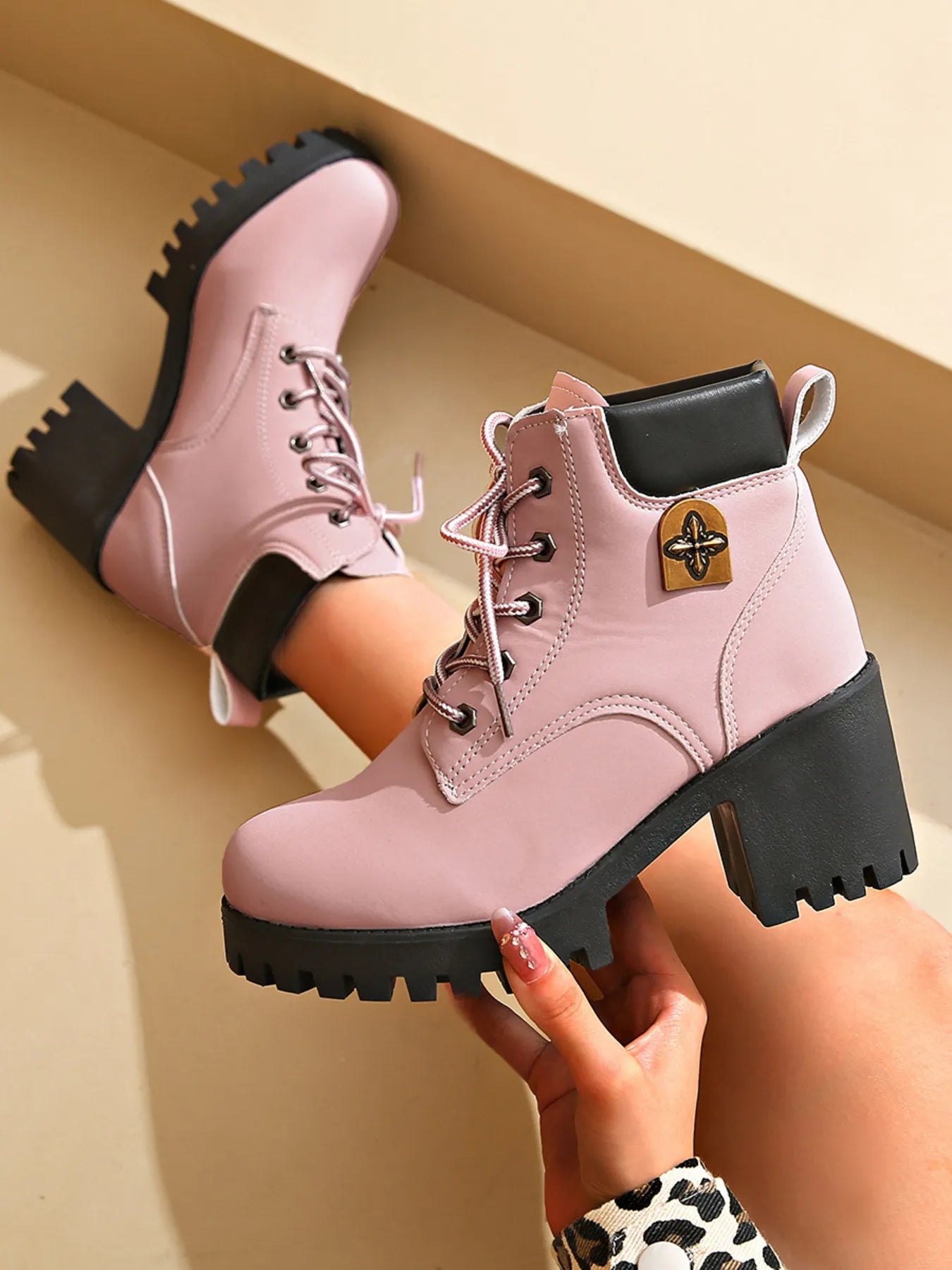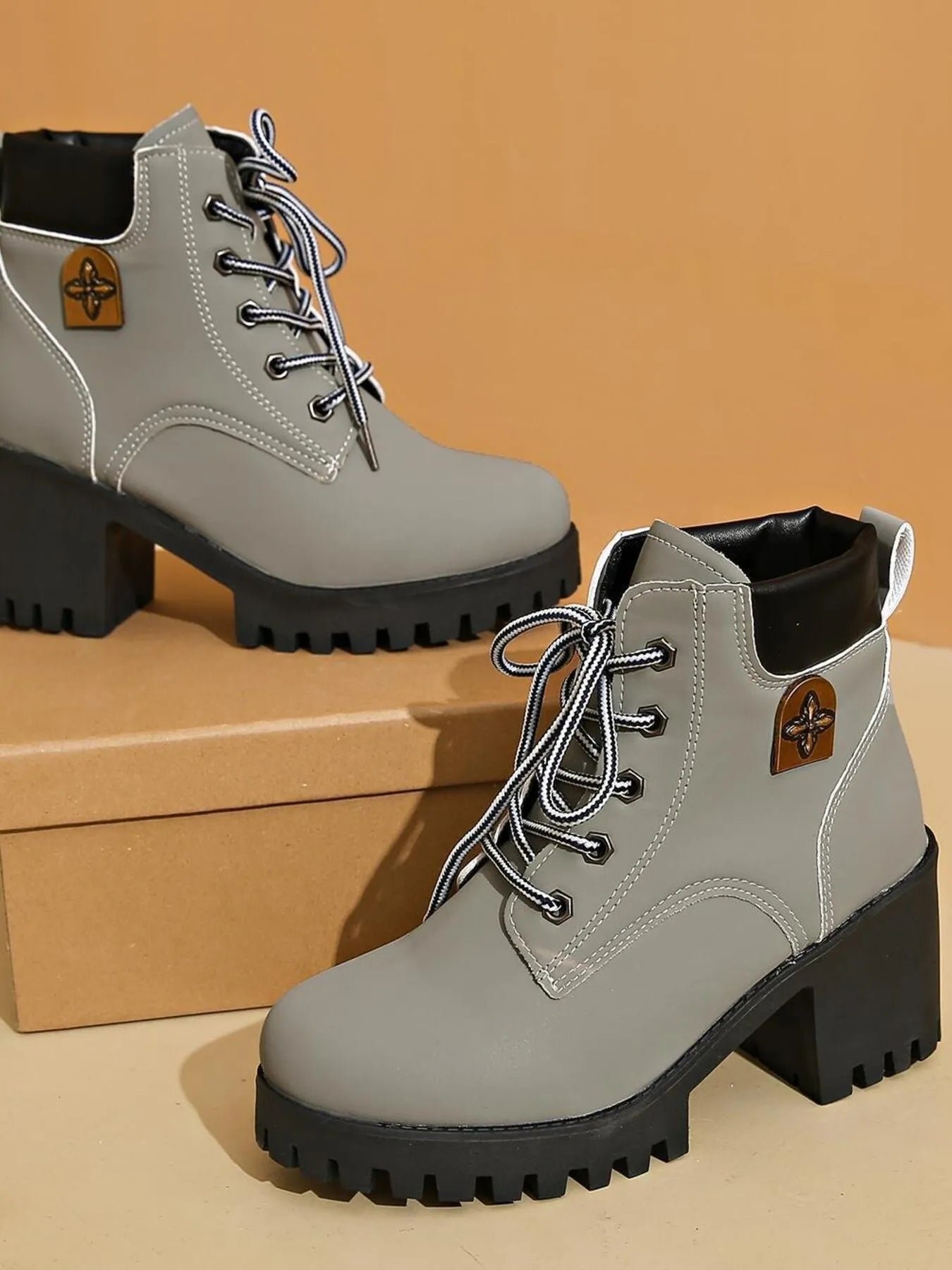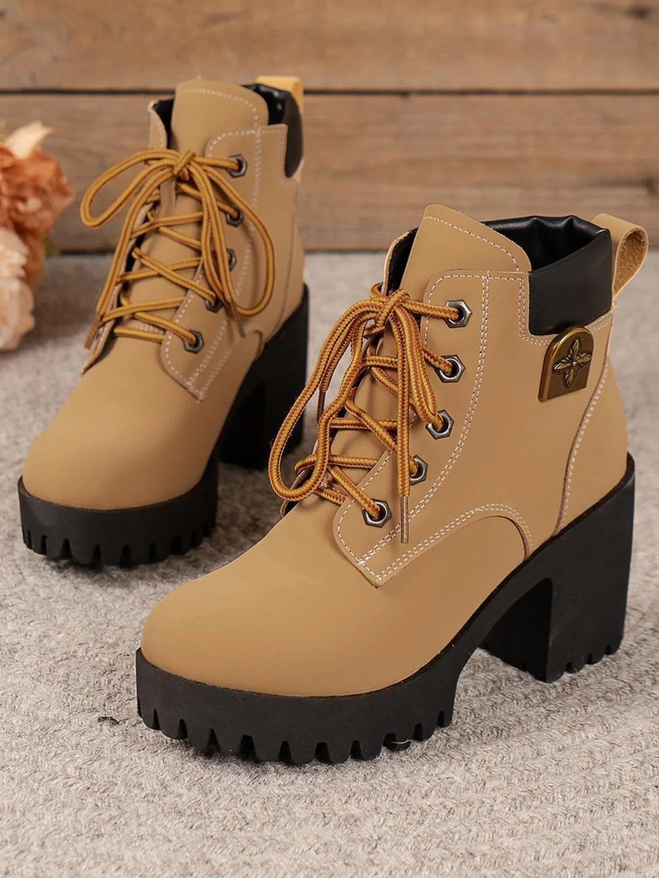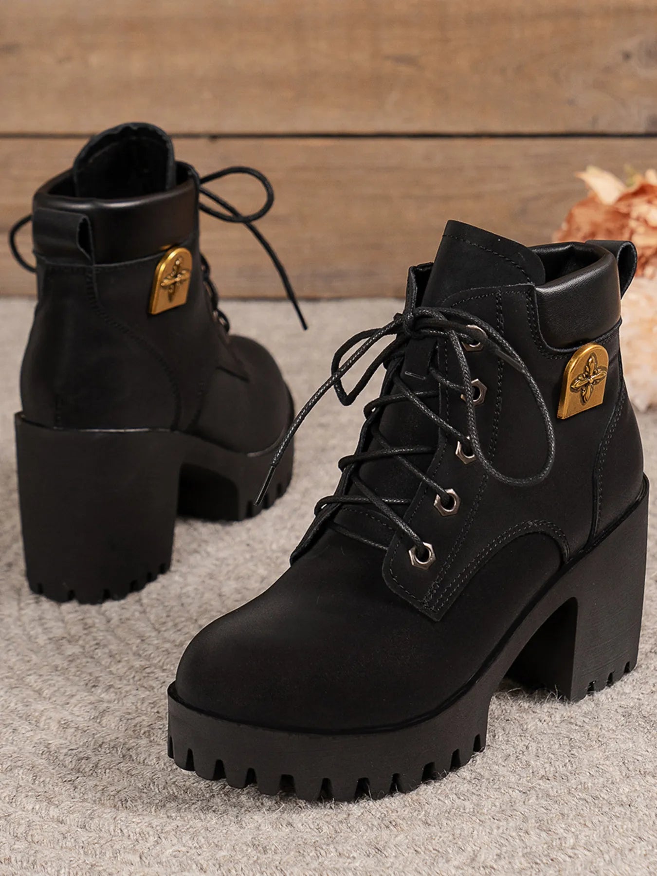Lace Up Block Heel Boots