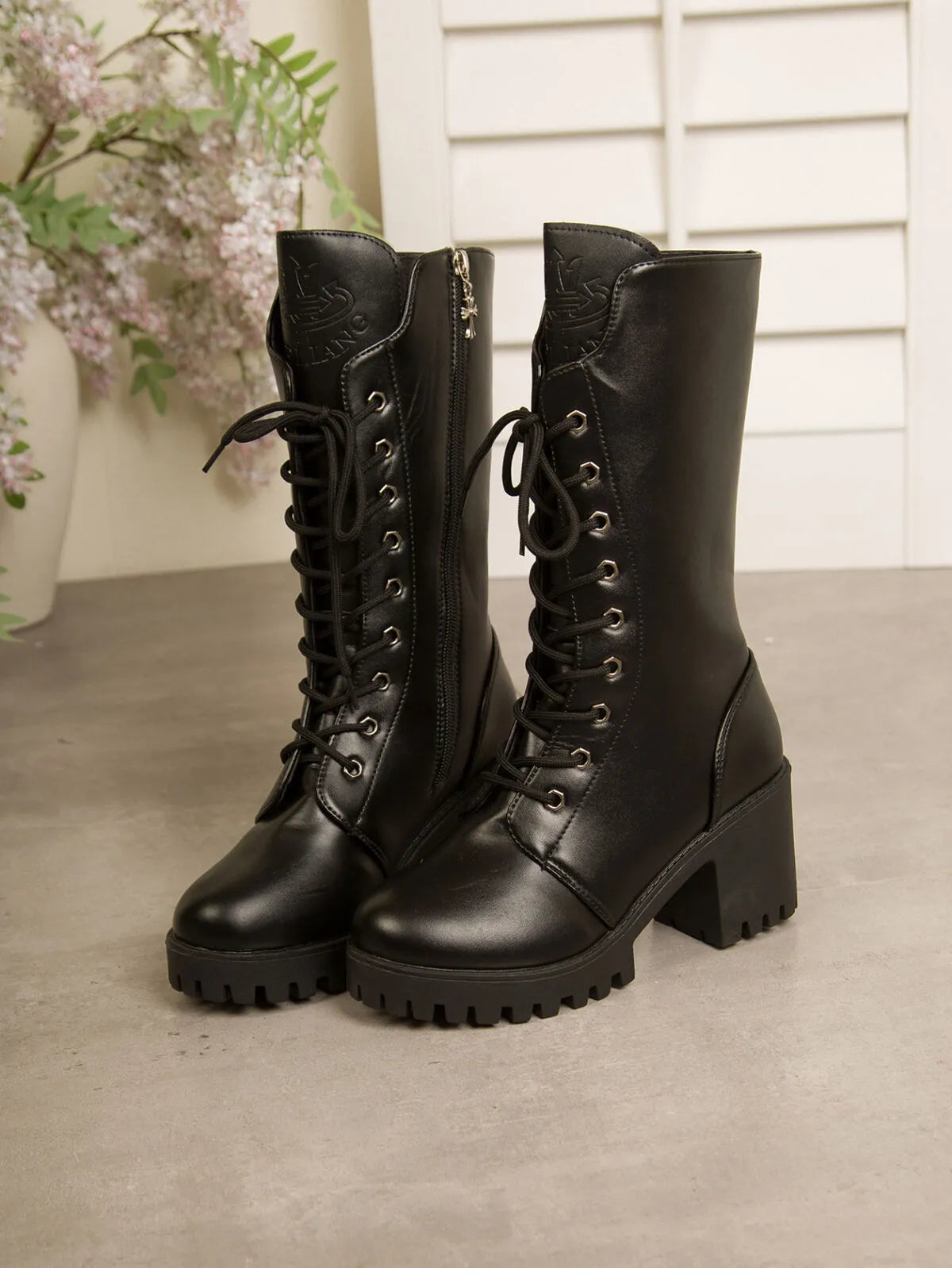 Lace Up Block Heels Boots