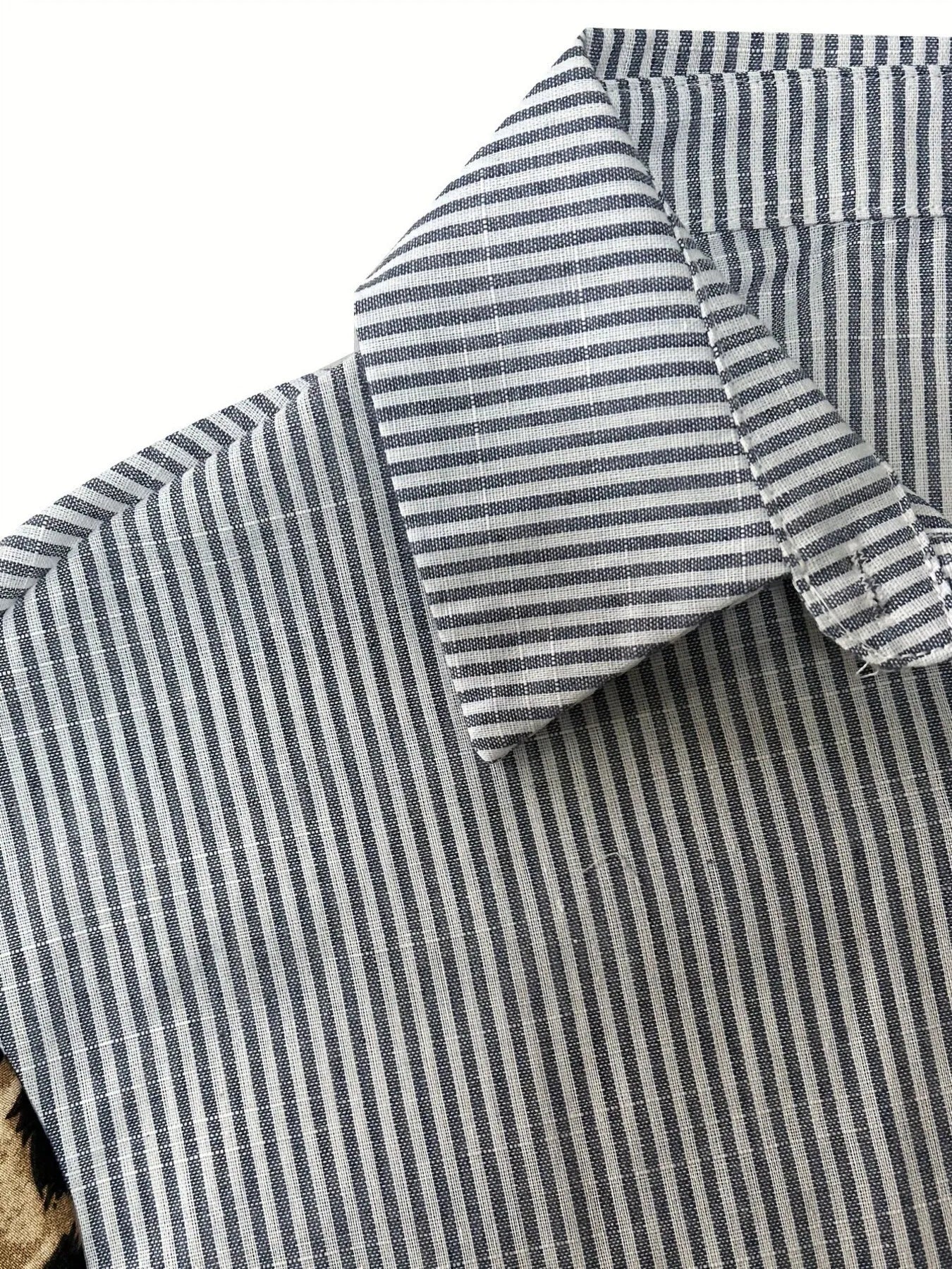 Leopard Print Sleeve Striped Button-Down Shirt