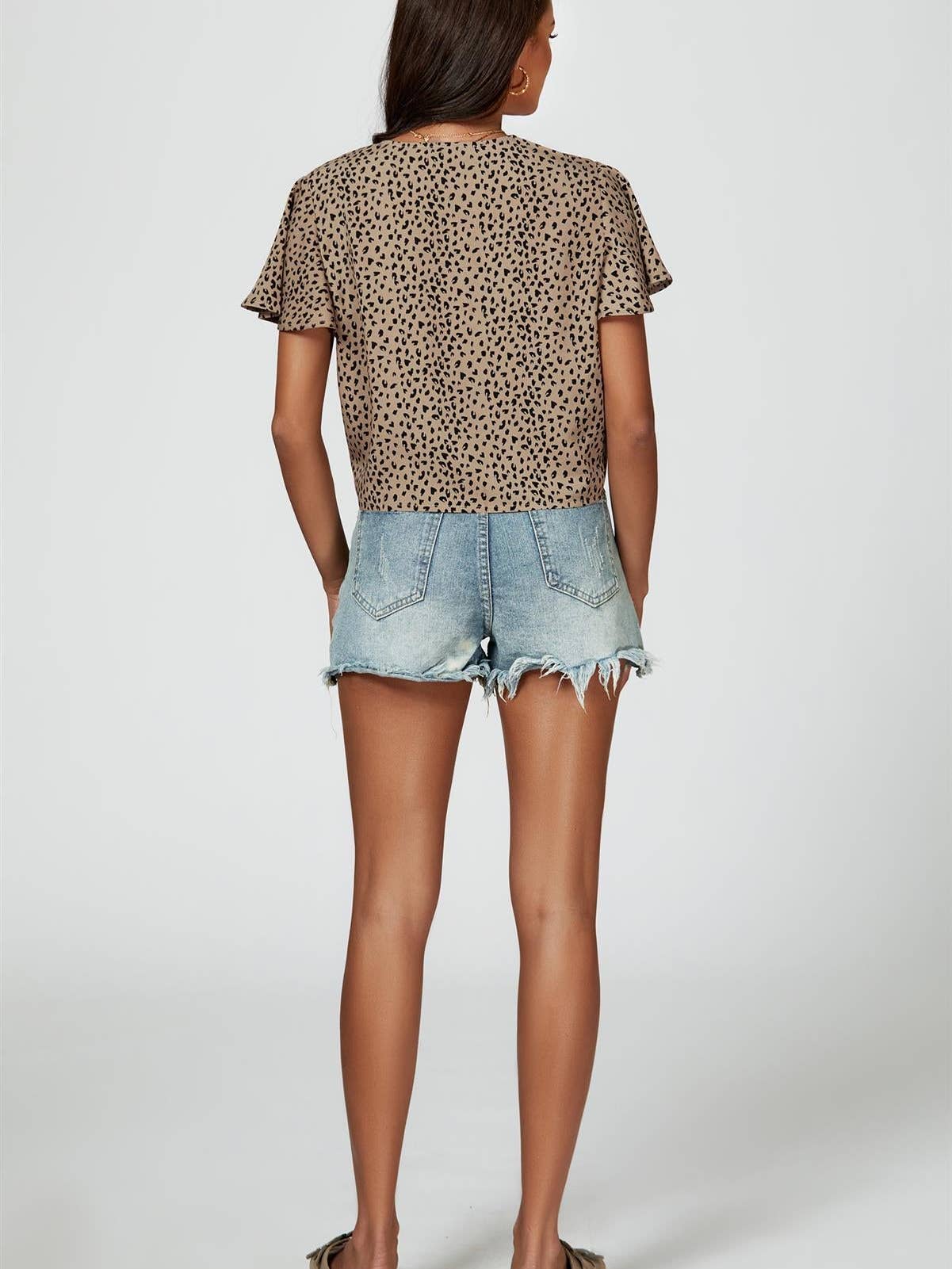 Leopard Print Tie Knot Front Buttoned Crop Top in Beige