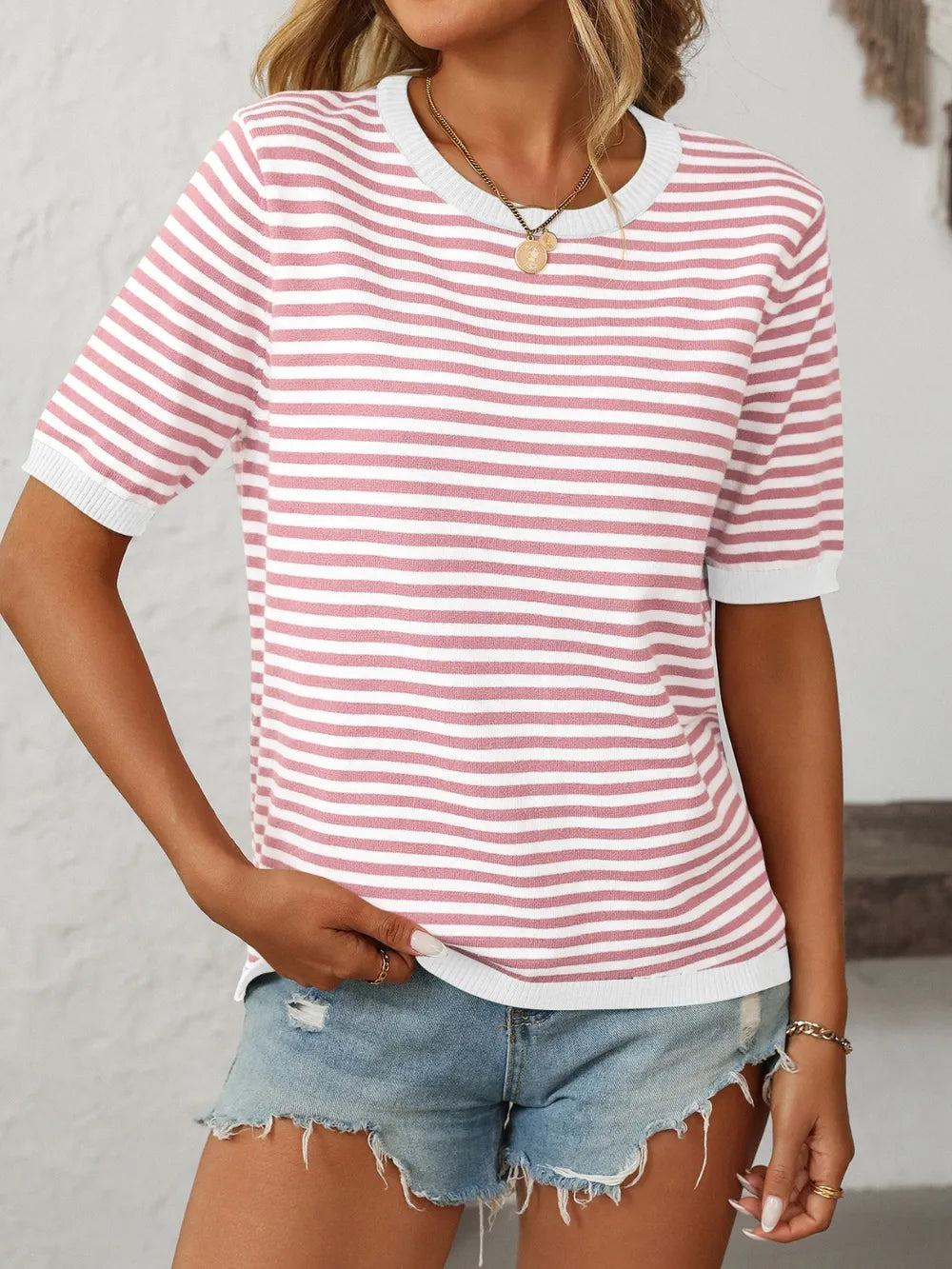 Mandy Striped Round Neck Half Sleeve Knit Top