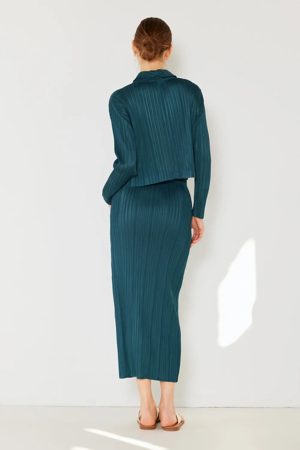 The pleated midi pencil skirt is a sophisticated and sleek option for a classic and polished look. The pleats add...