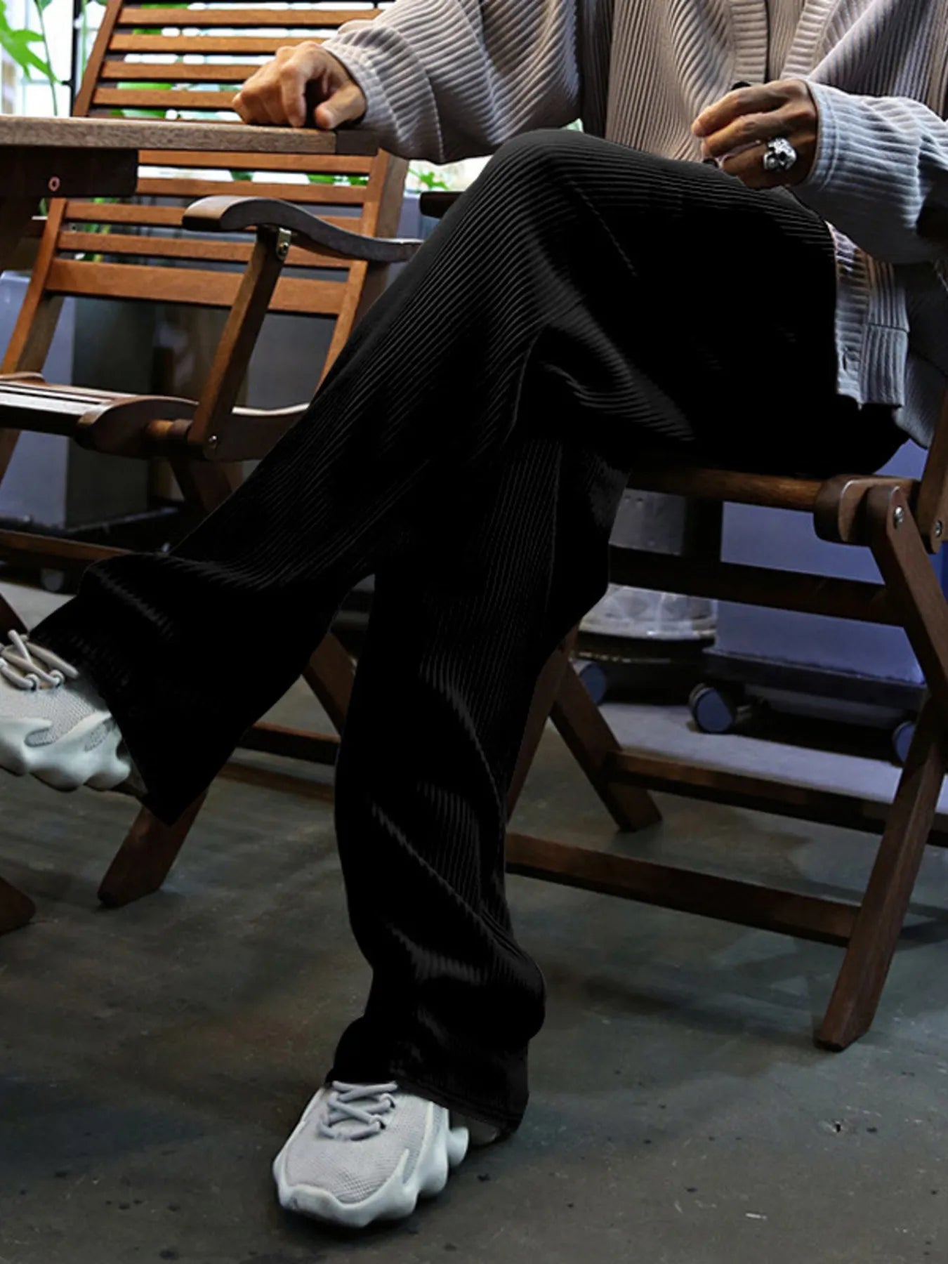 • Men's Full Size Relaxed Fit Drawstring Wide Leg Pants Plus Size Black