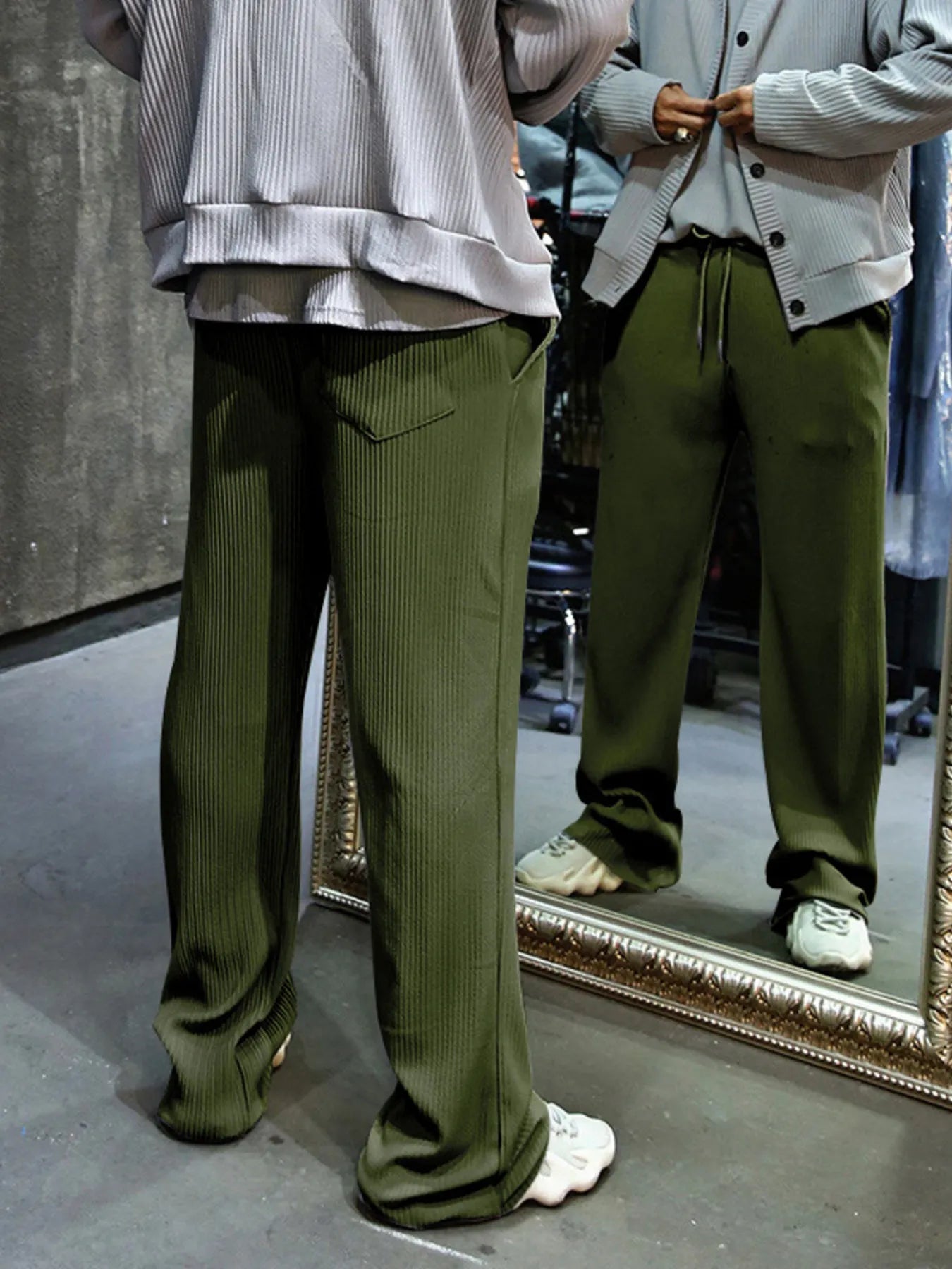 • Men's Full Size Relaxed Fit Drawstring Wide Leg Pants Plus Size Military Green