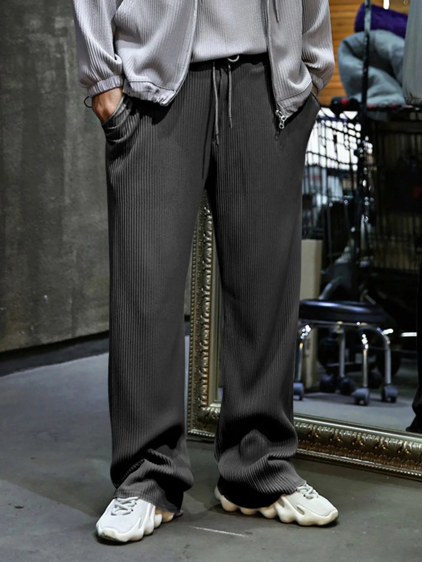 • Men's Full Size Relaxed Fit Drawstring Wide Leg Pants Plus Size Dark Gray
