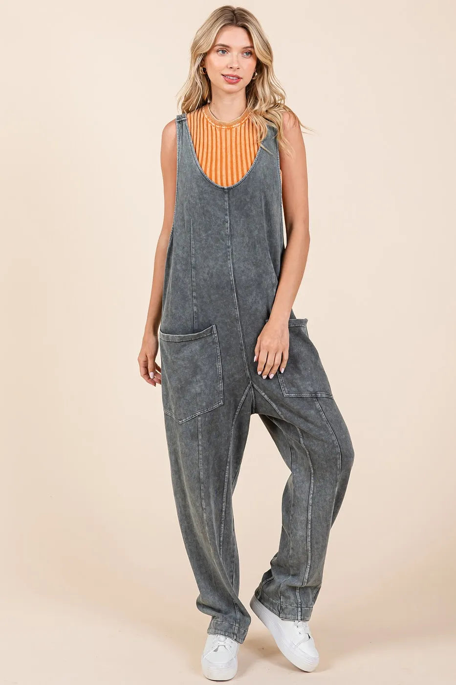 Mittoshop Mineral Wash Relaxed Fit Sleeveless Harem Jumpsuit