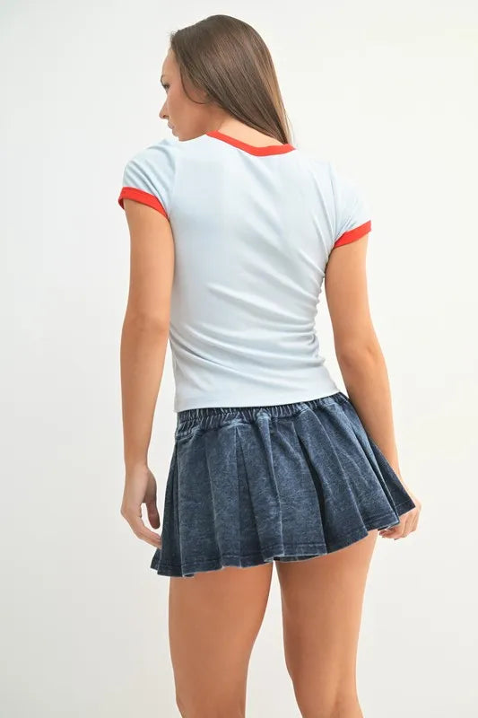 The Contrast Trim Fitted Baby Tee is a stylish and flattering option for a casual yet trendy look. Its contrast...