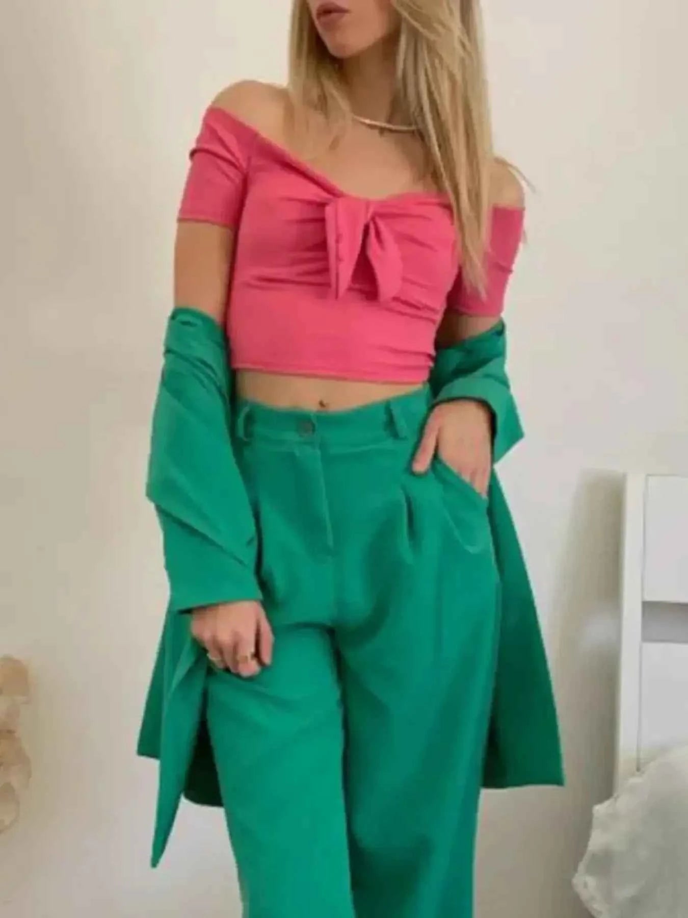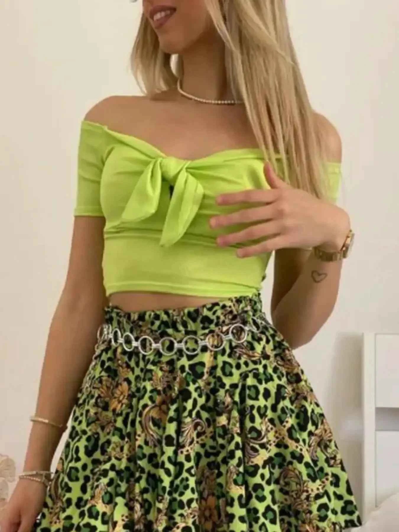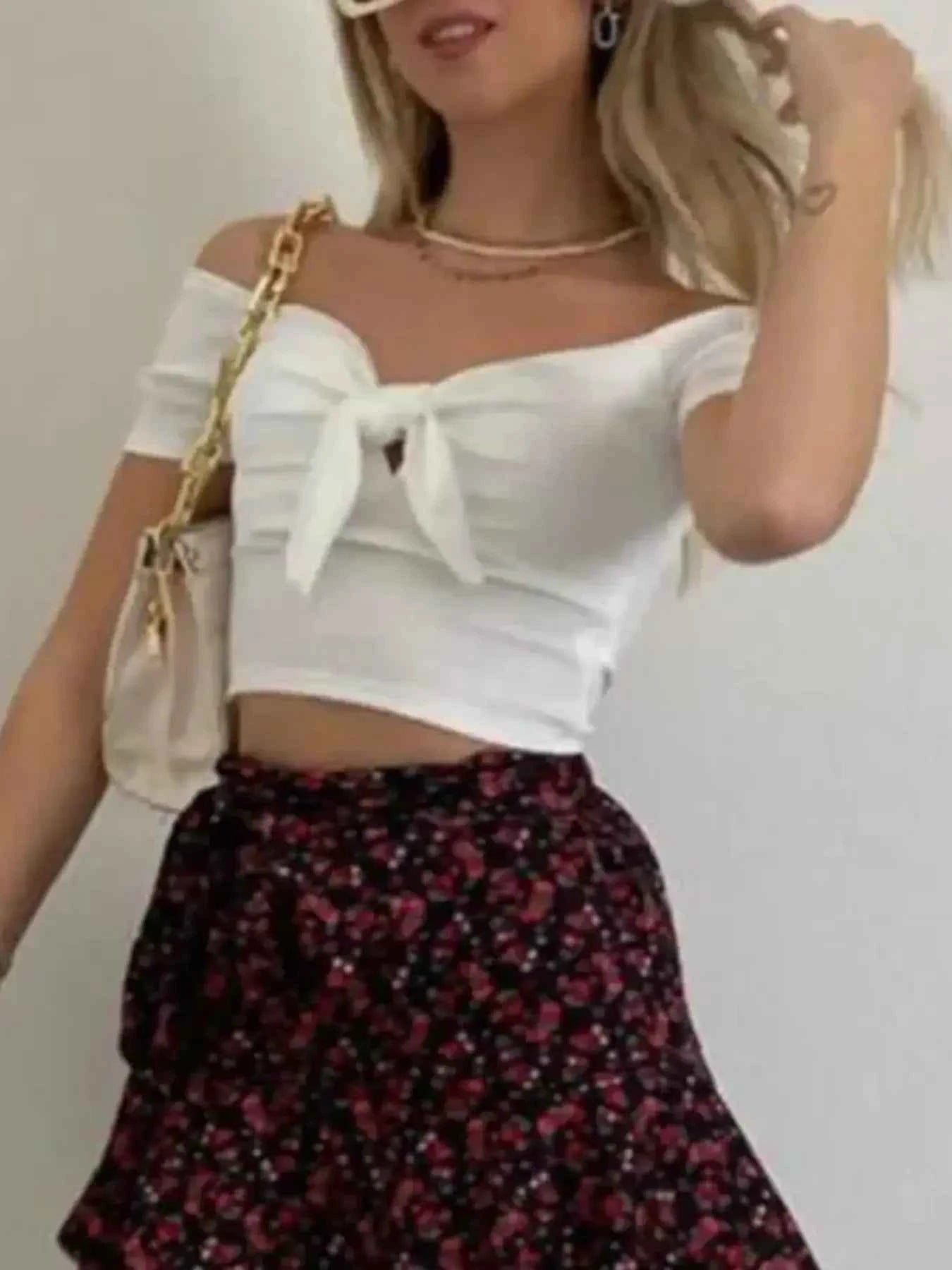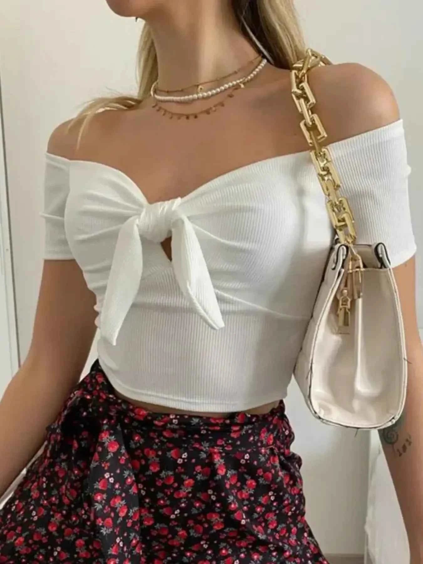 Off-Shoulder Bow-Tie Crop Top