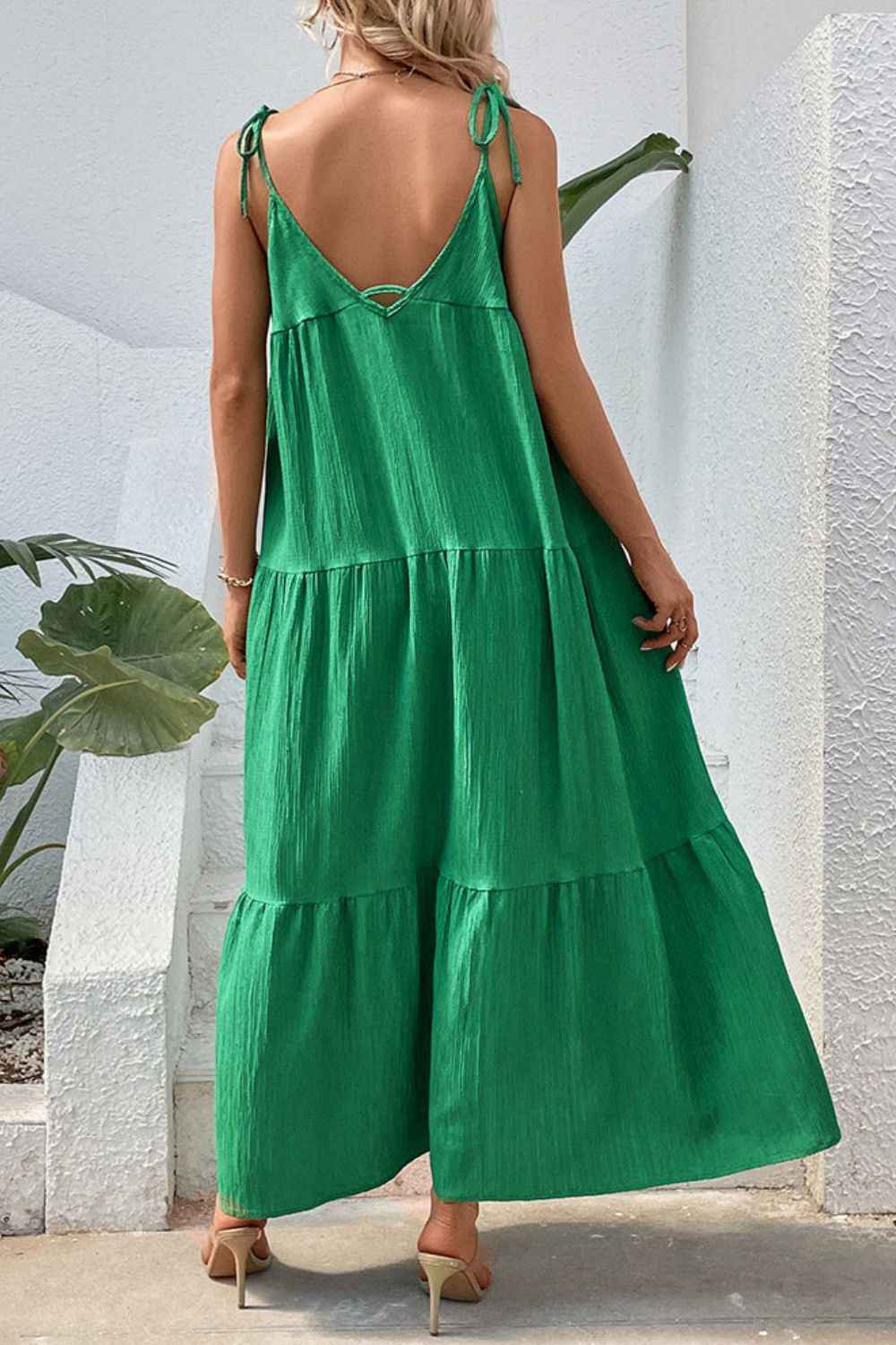Perfee Tie-Shoulder Tiered Maxi Dress