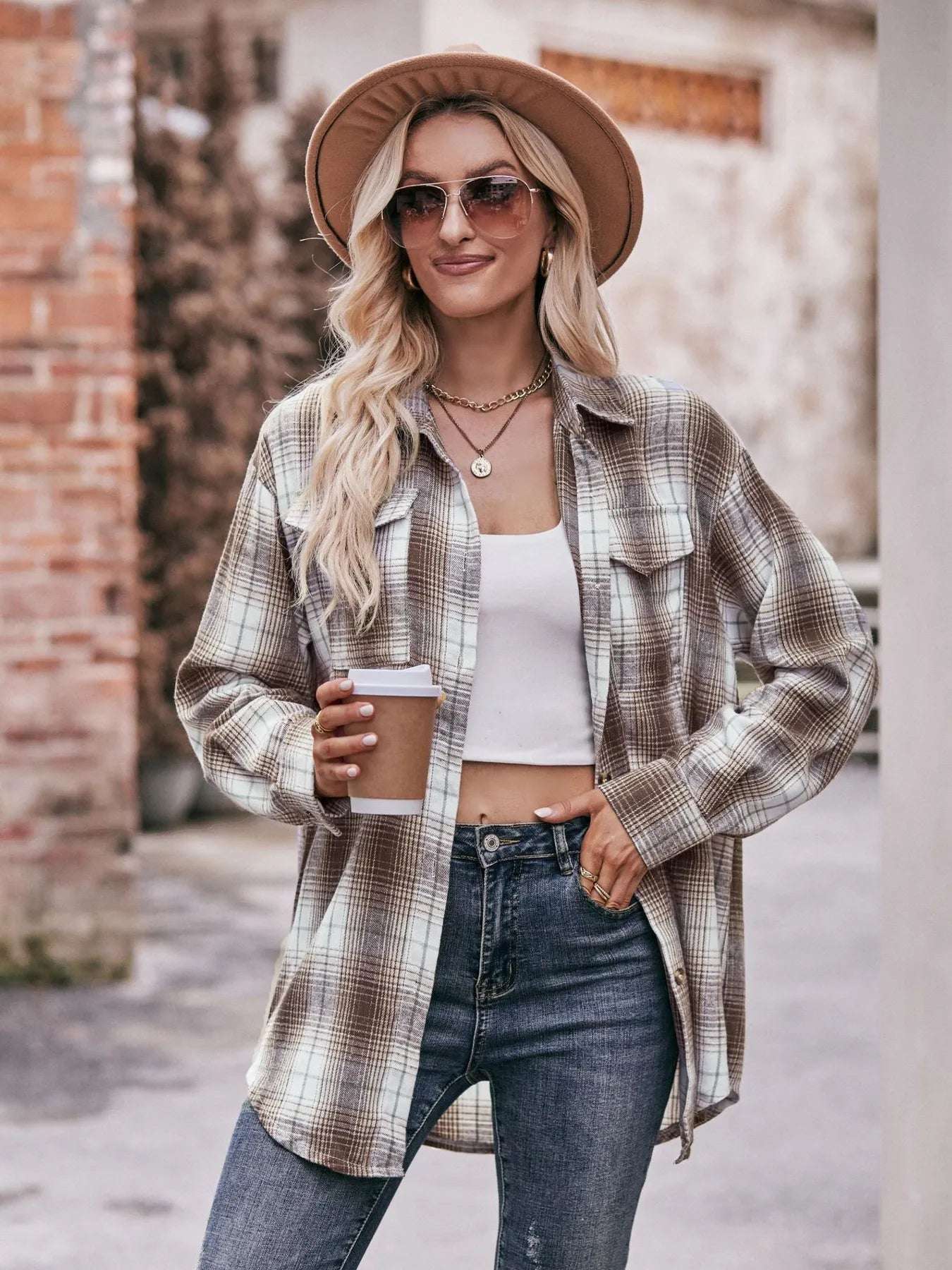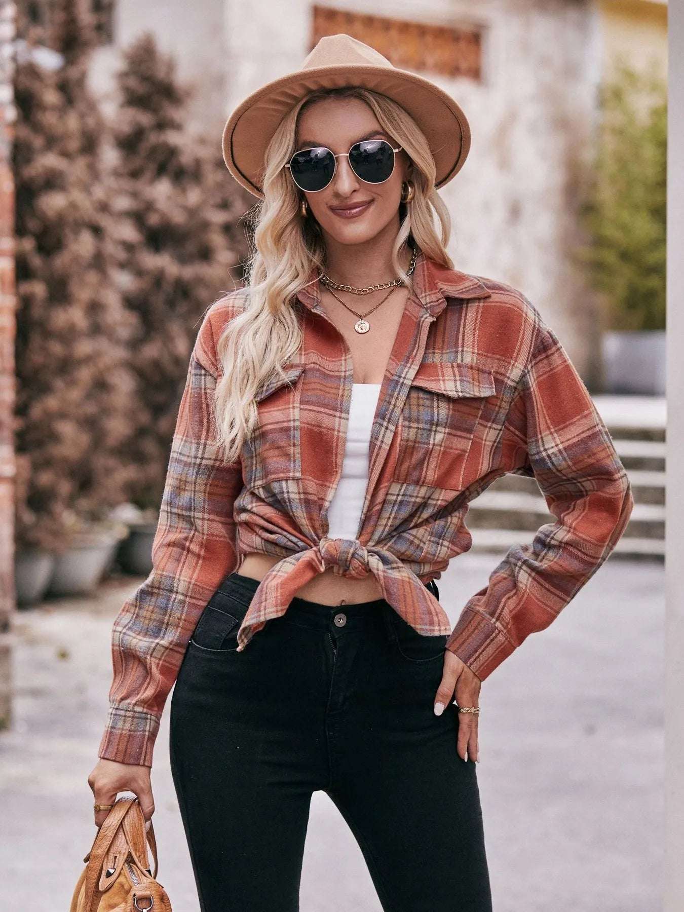 Plaid Button-Down Long Sleeve Shirt