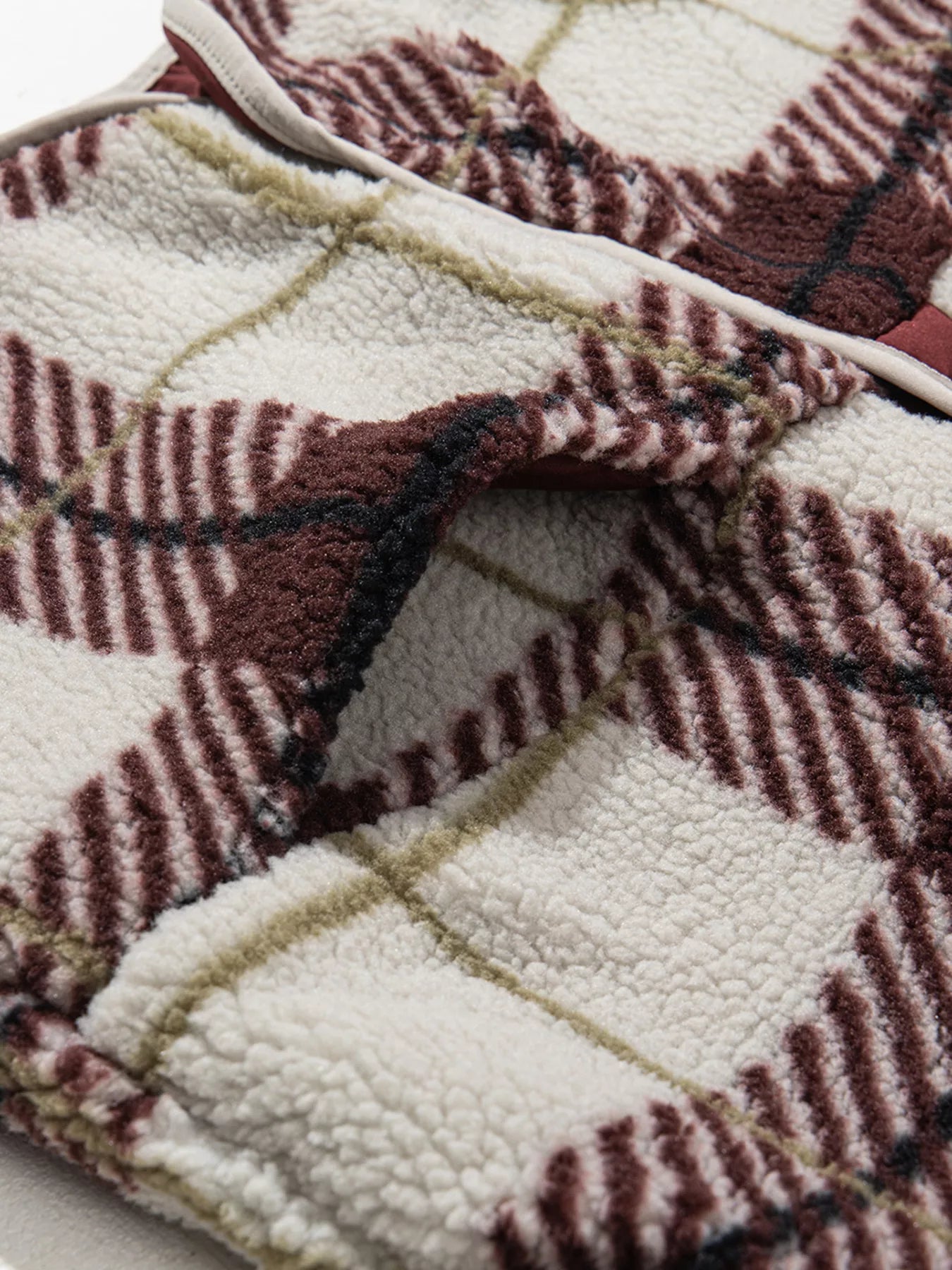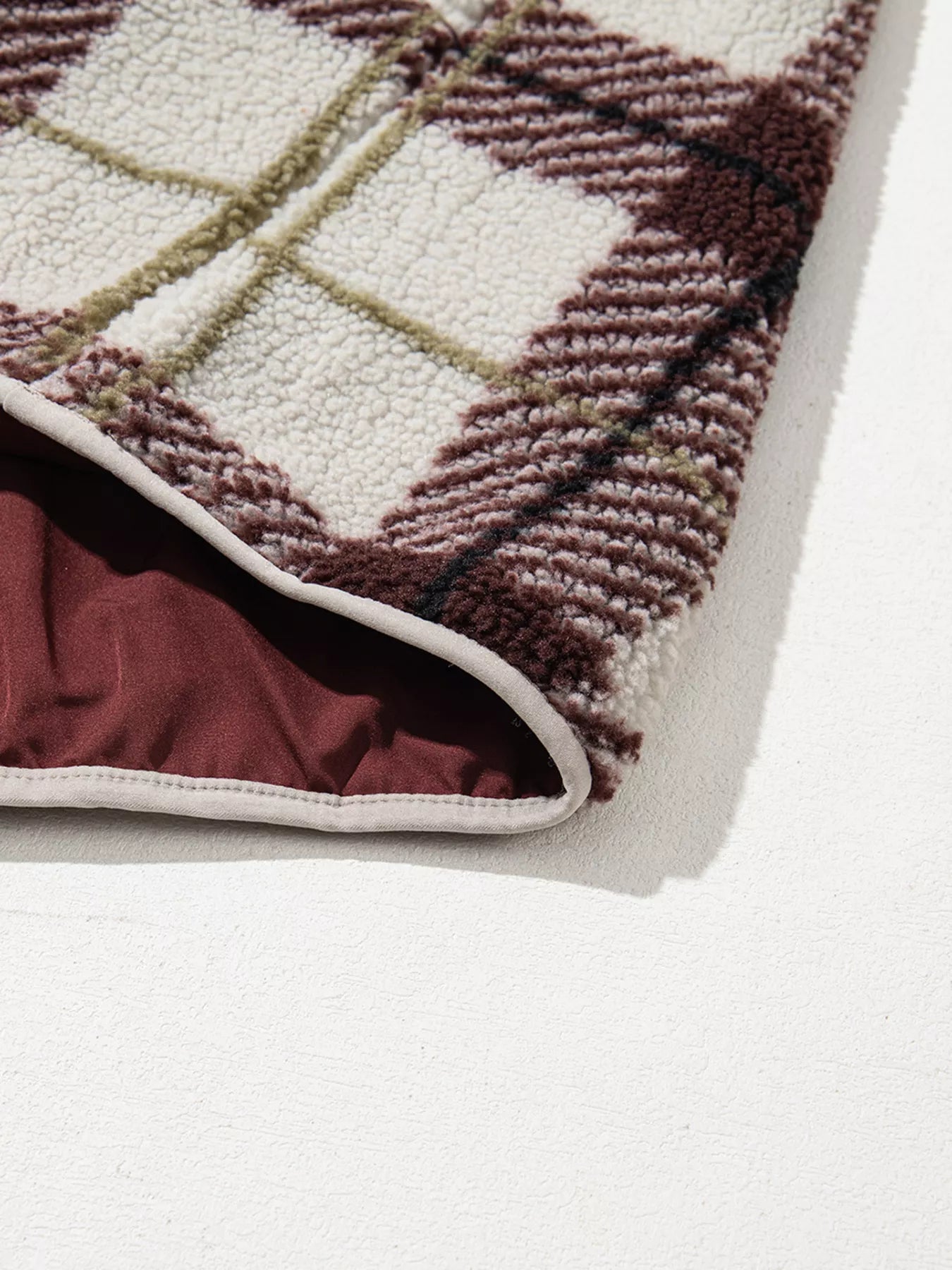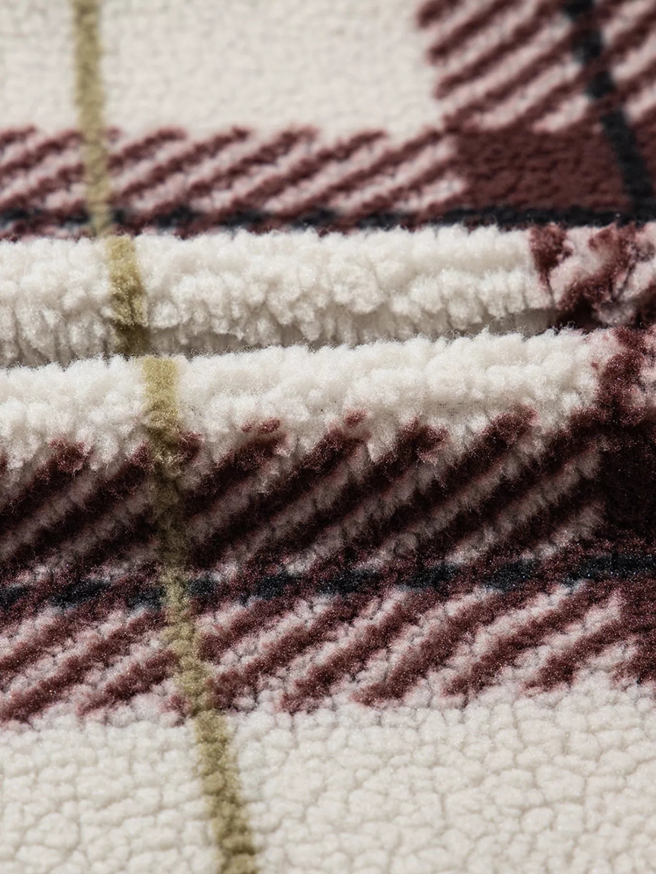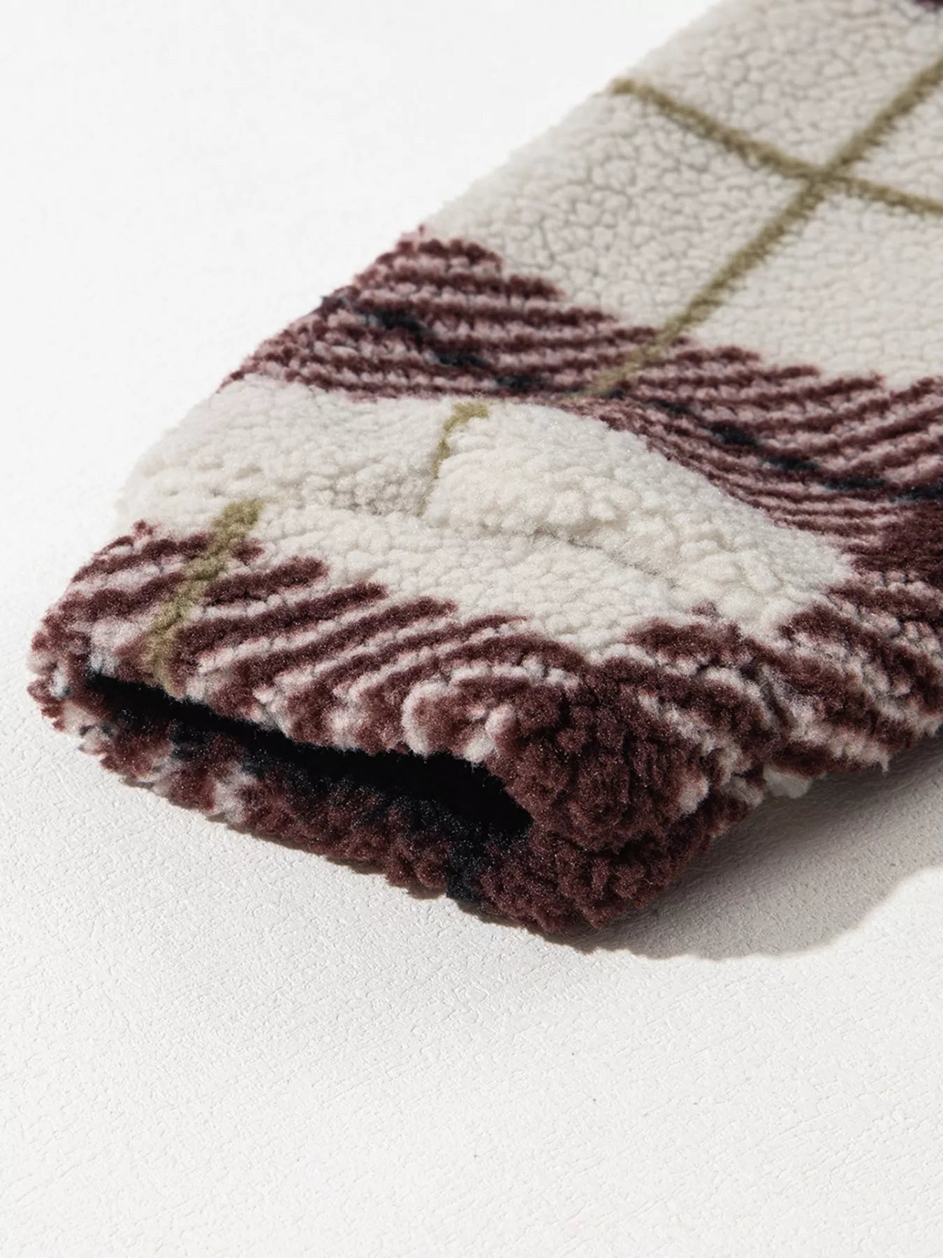 Plaid Buttoned Stand Collar Fleece Jacket