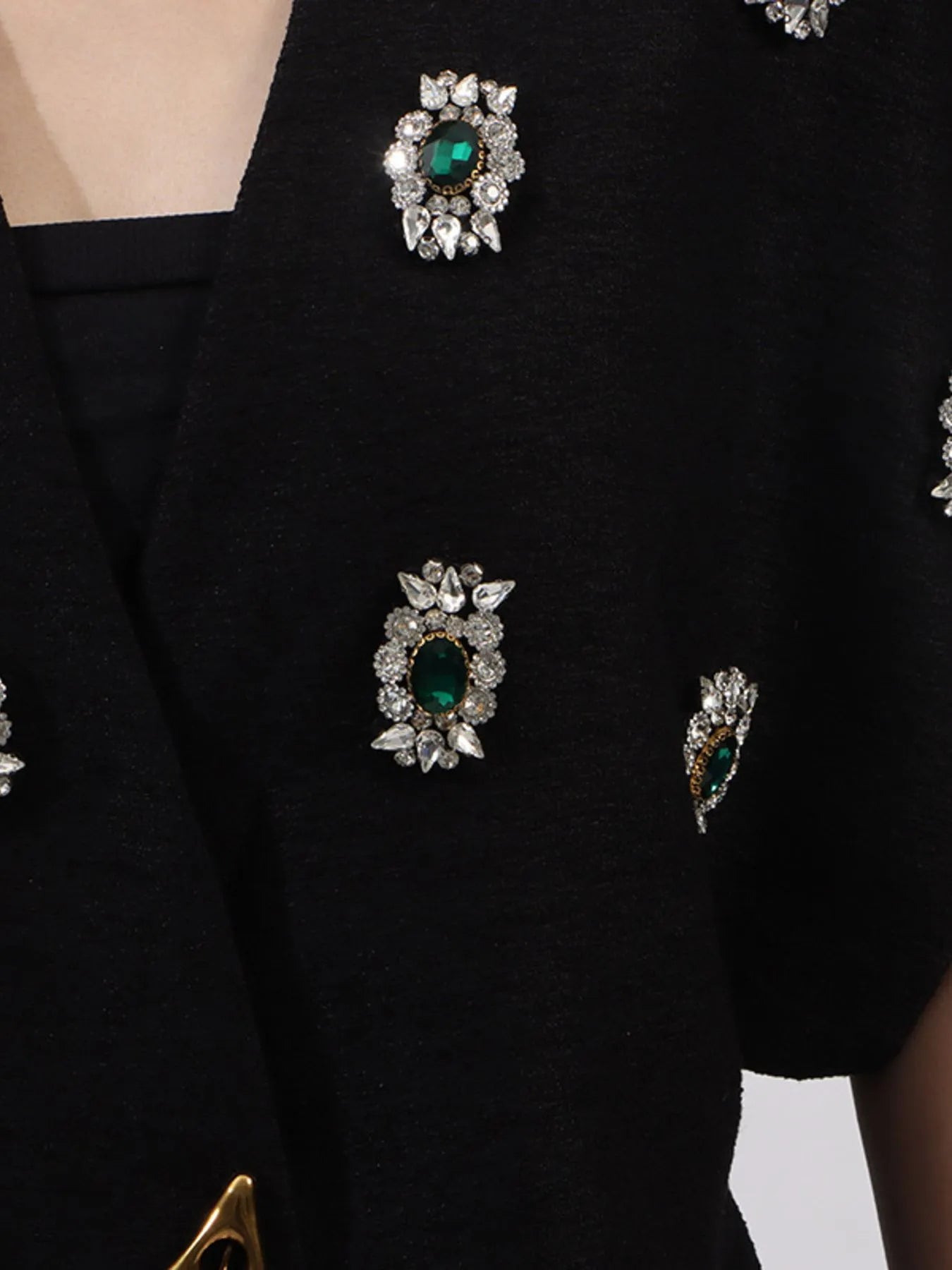 Plus Size Rhinestone Relaxed Fit Vest Coat