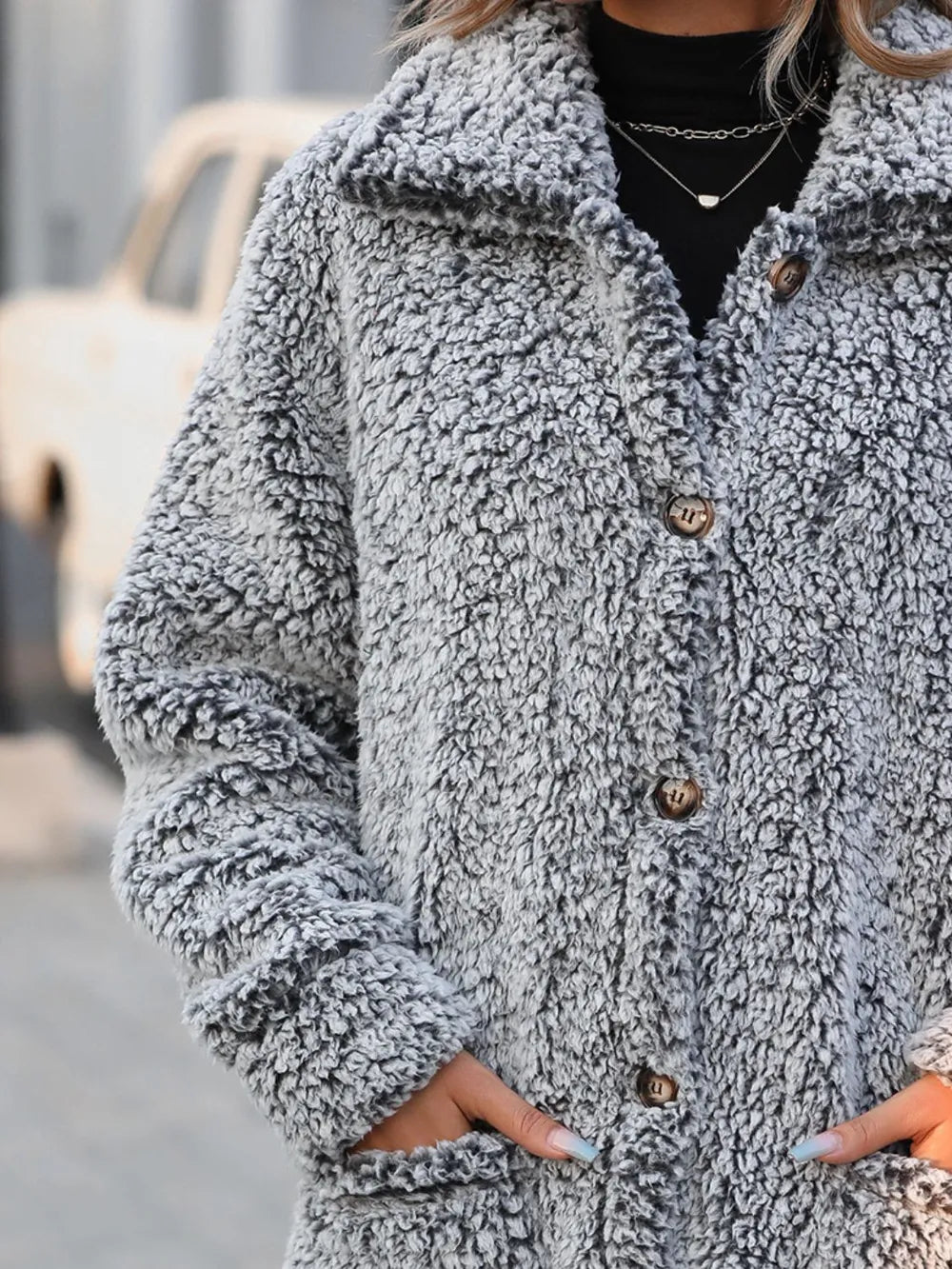 Pocketed Collared Neck Long Sleeve Plush Jacket
