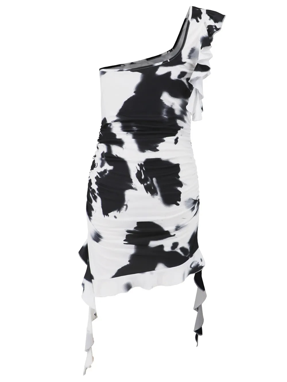 Ruffled Tie-Dye Single Shoulder Mini Dress