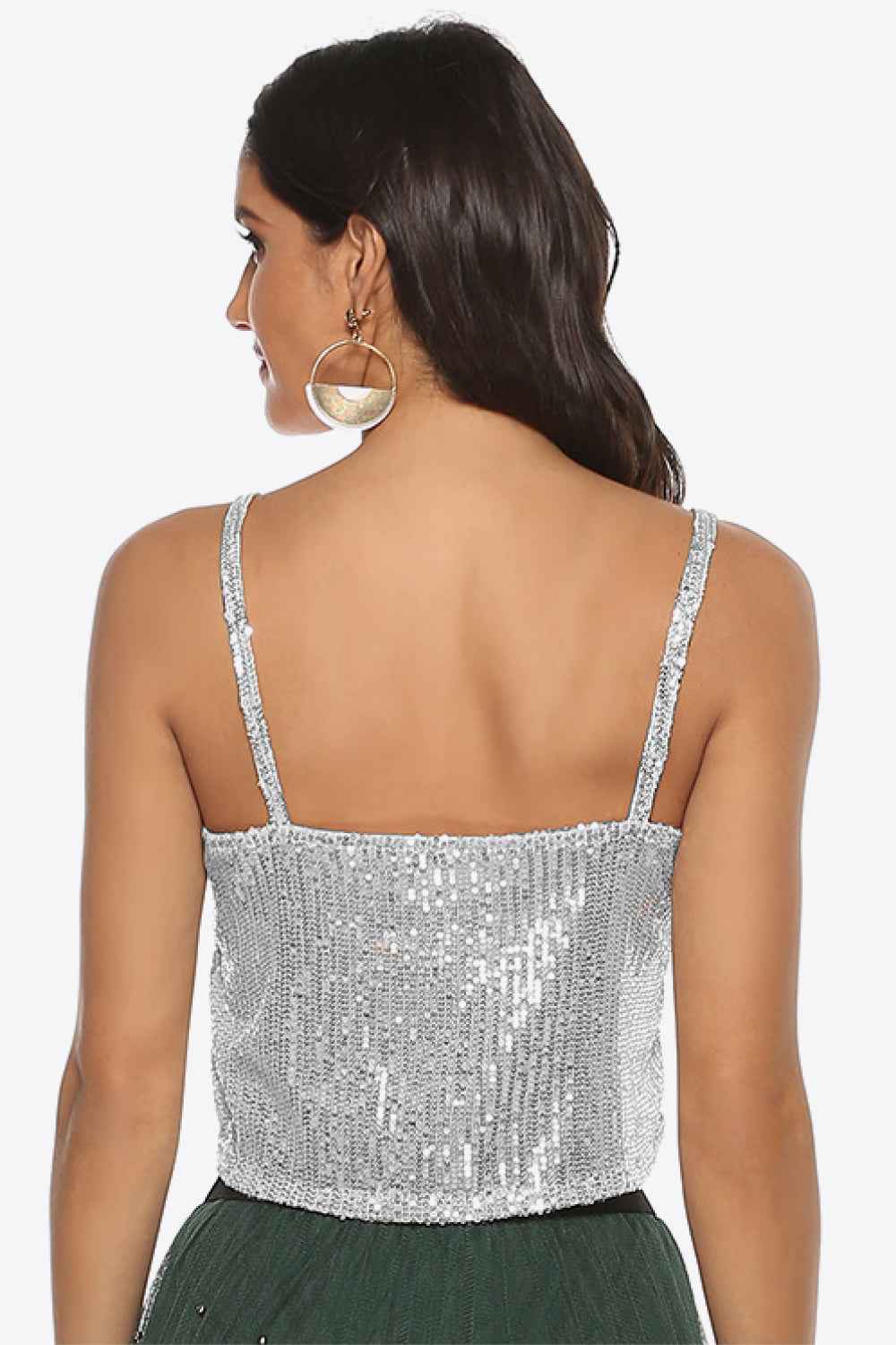 Sizing category: Regular Pattern type: Solid Style: Chic Features: Contrast sequin Neckline: V-neck Length: Cropped Sleeve length: Sleeveless Sleeve type:...
