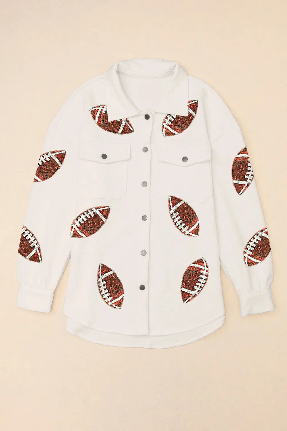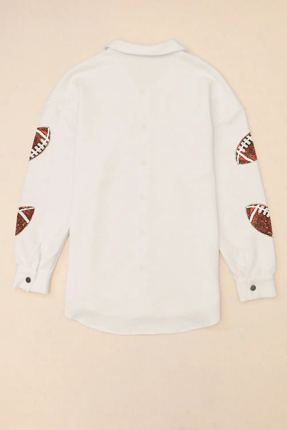 Sequin Football Patch Collared Neck Snap Button Jacket