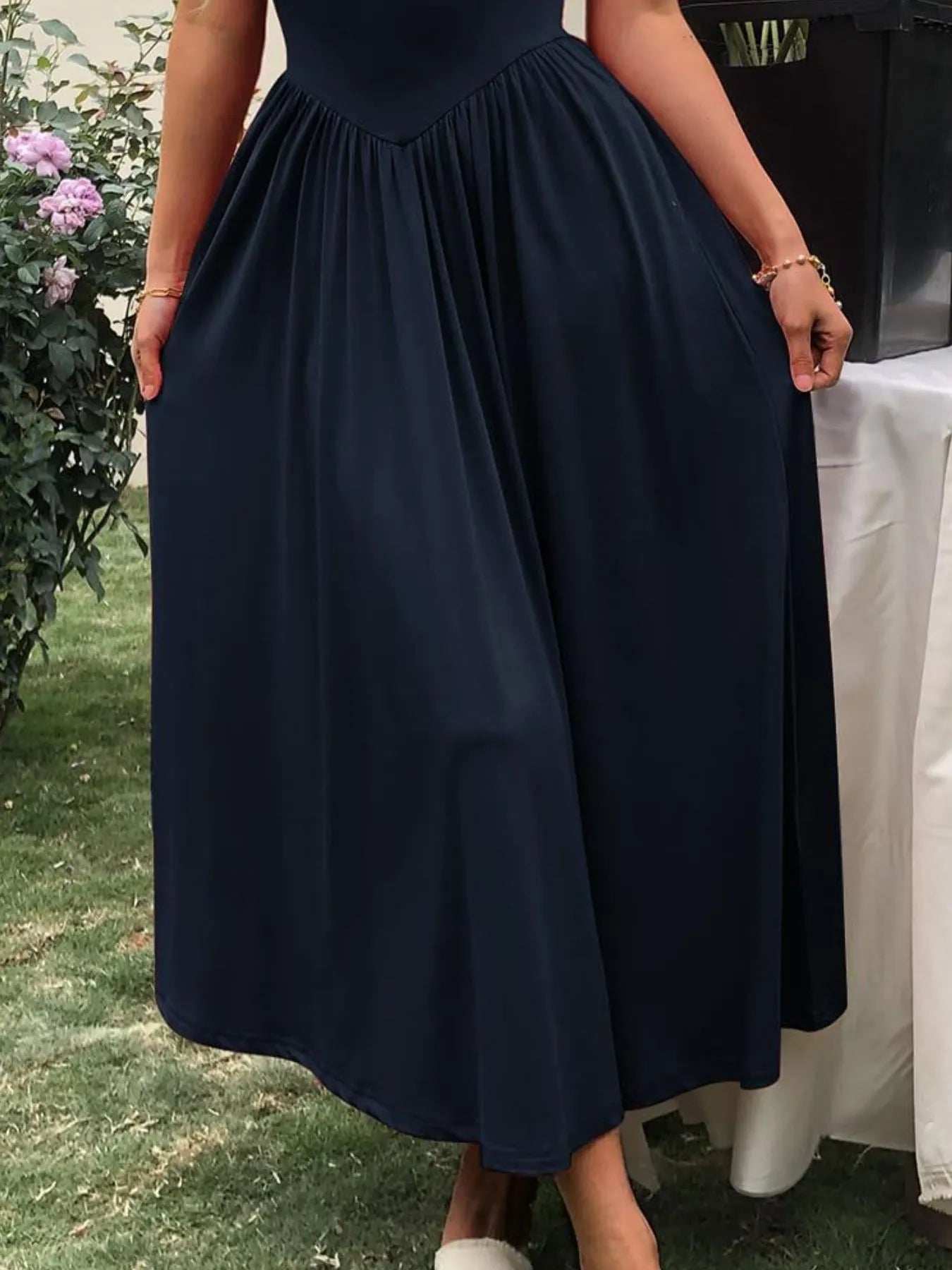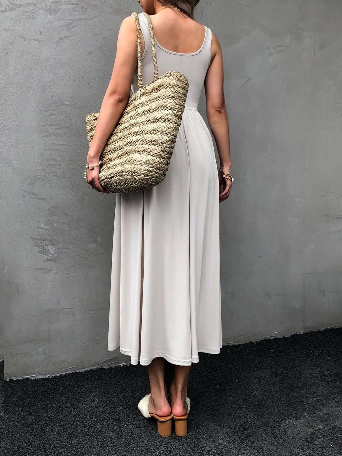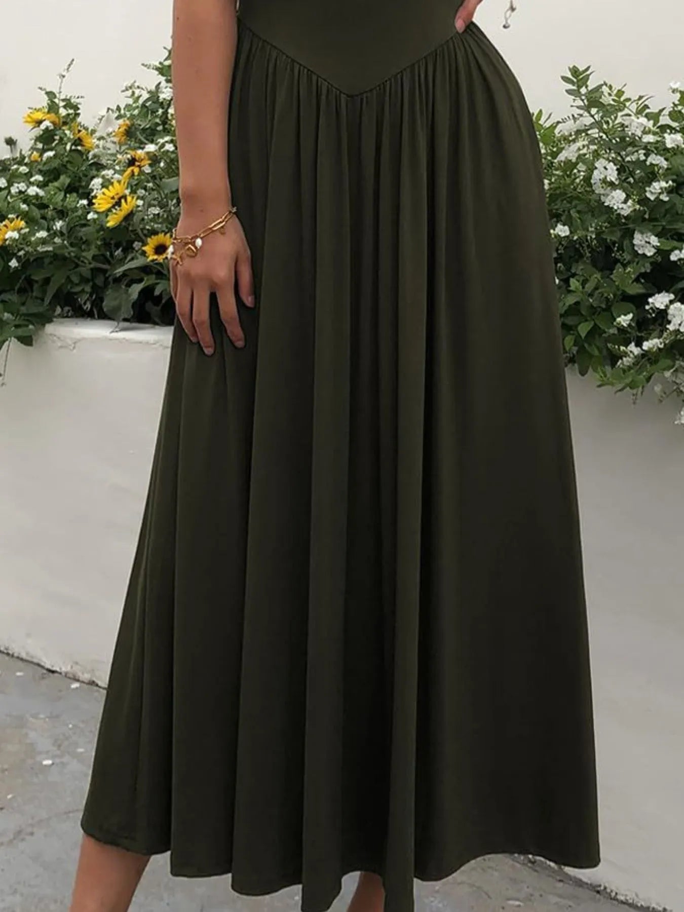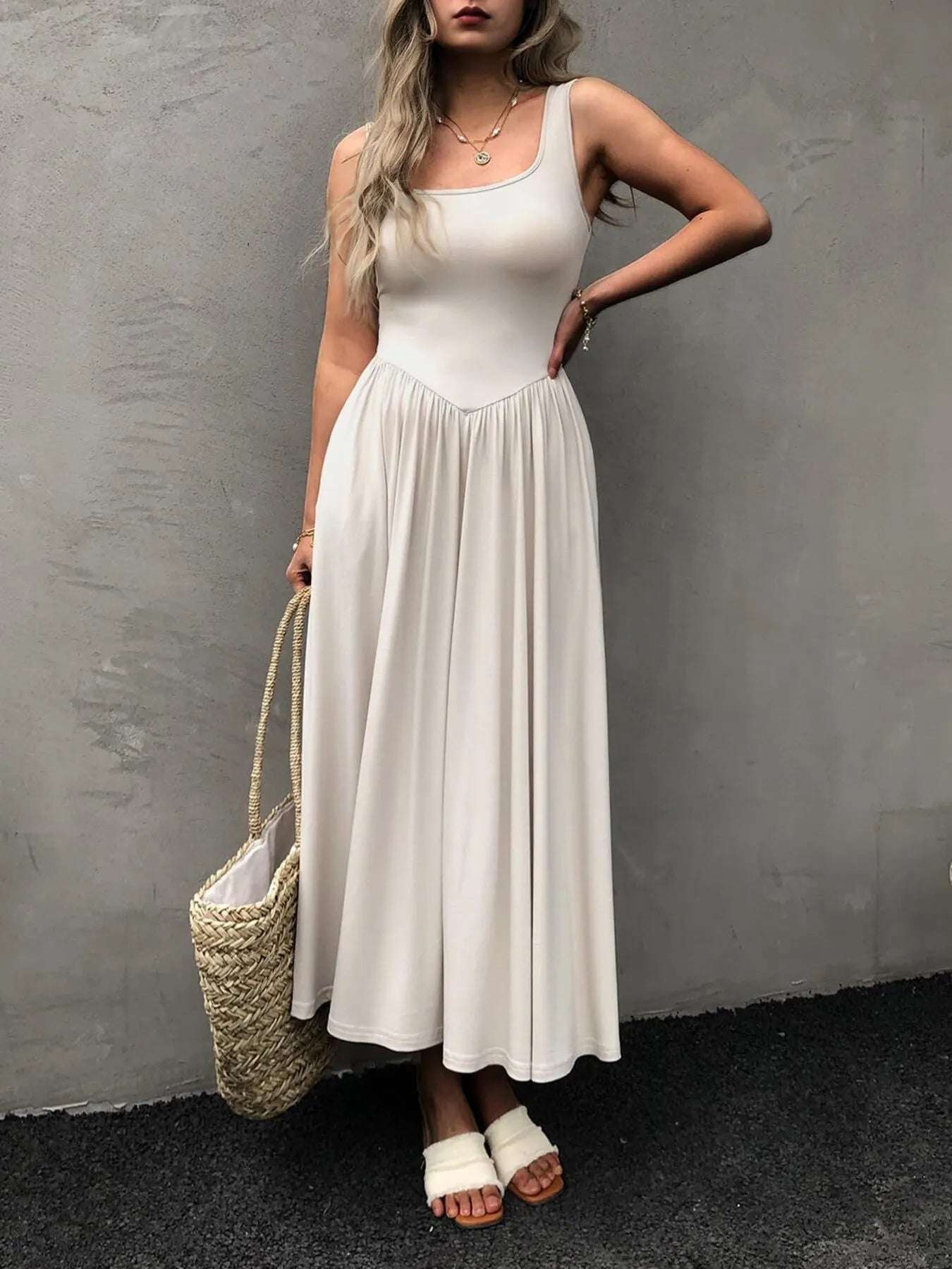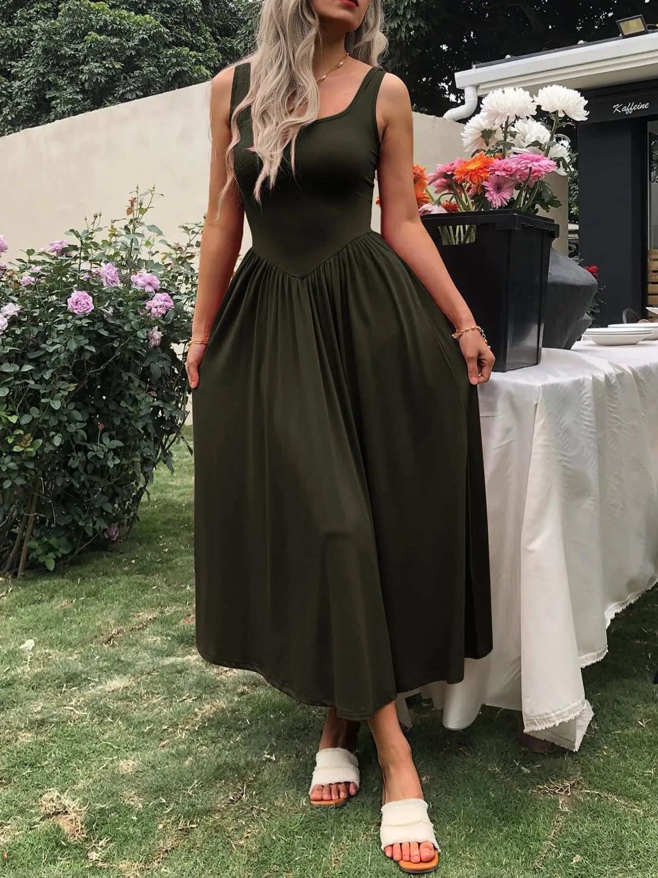 Sleeveless Midi Dress with Gathered Waist