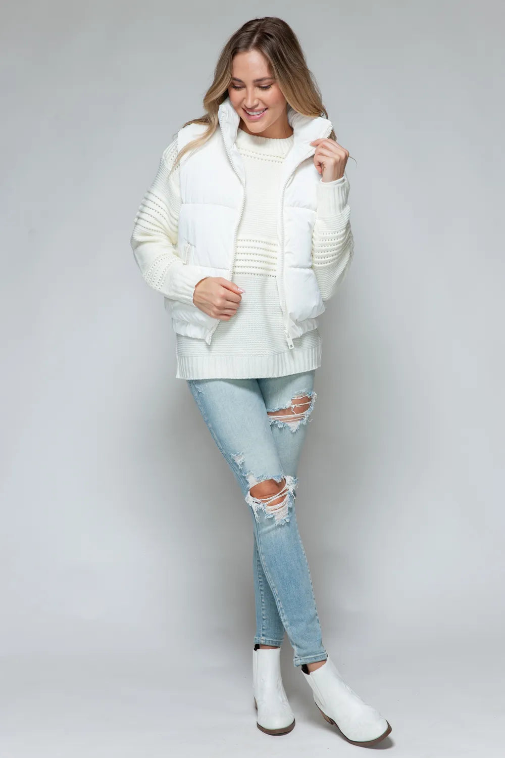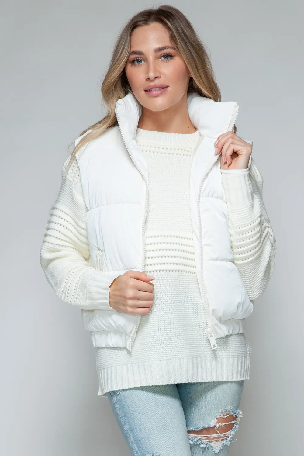 The fine fur lining quilted vest is a stylish and cozy outerwear option for cooler weather. The quilted design adds a touch of texture, while the fur lining provides extra warmth and comfort. Perfect for layering over your favorite outfits for a trendy and functional look.